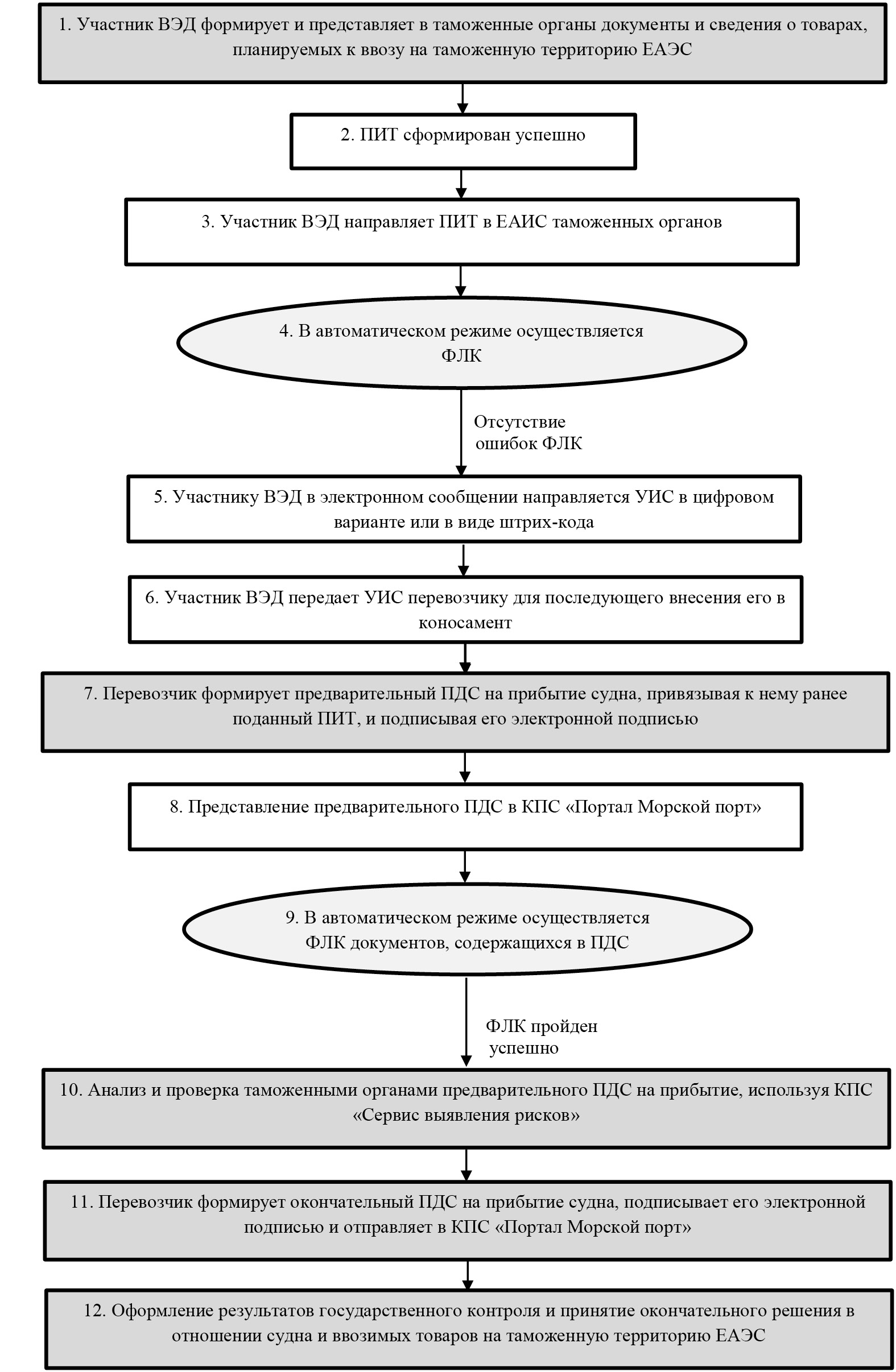 - декларант сообщает УИС диспетчеру транспортной компании, которая формирует документацию по сопровождению груза, или передает его водителю транспорта для последующего внесения в коносамент;