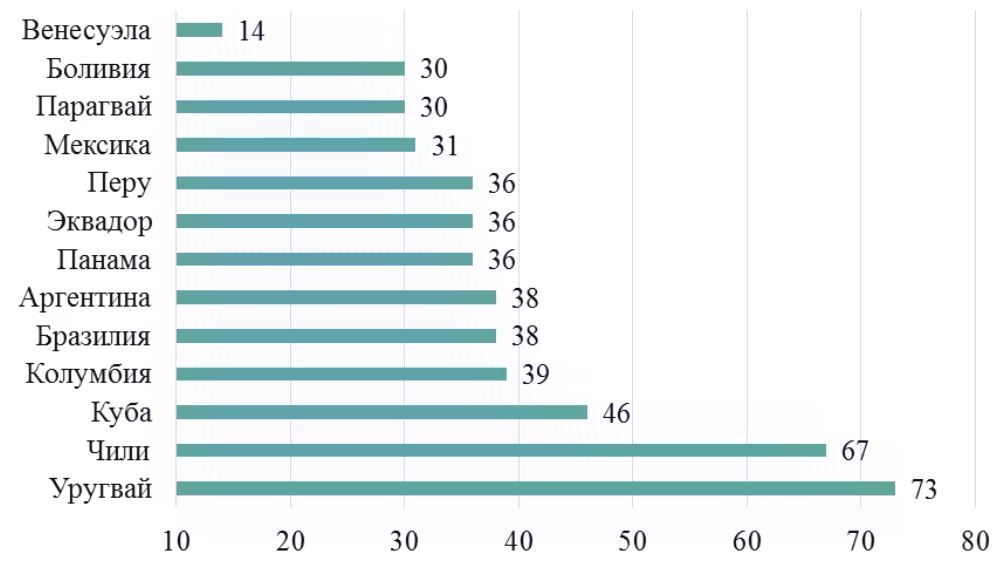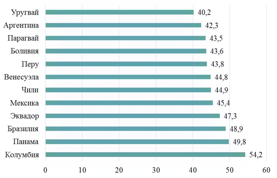 9 Толмачев М. Н. Экономическая база Латама: на чем живет глобальный рынок Южной Америки. Аналитический материал на сайте РБК. – URL: https://trends.rbc.ru/trends/social/62d1445a9a79477 08d3e28d4 (дата обращения: 01.02.2023).