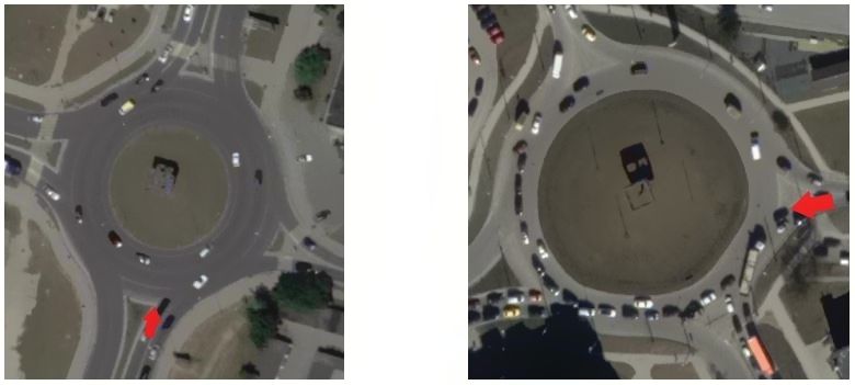 - более 40% водителей въезжают на кольцо по правой полосе, двигаются по максимально прямой траектории, пересекая левую полосу на кольцевой проезжей части;