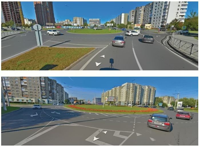 Рисунок 4. Кольцевые пересечения до изменения разметки: Гайдара-Челнокова (сверху) и Гайдара-Горького (снизу)