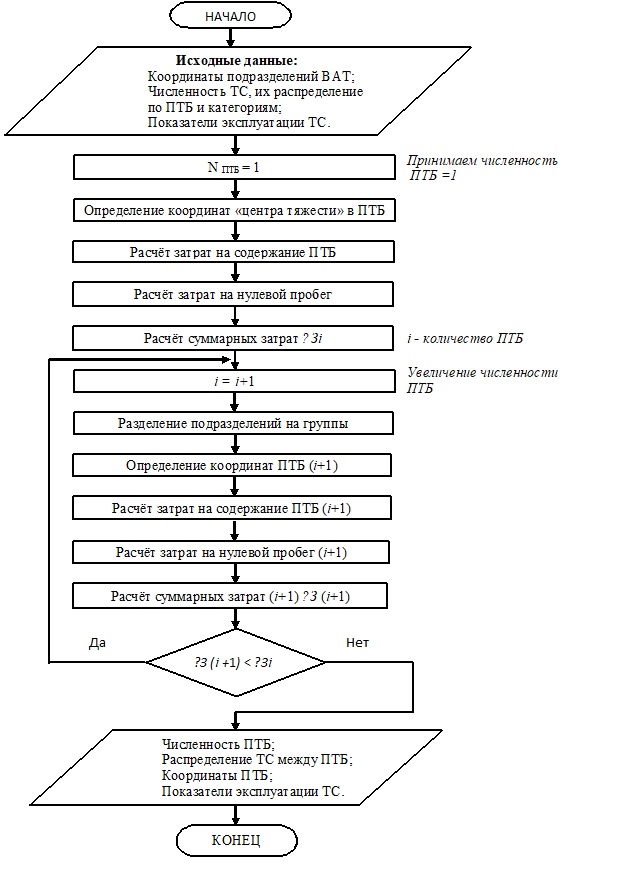 Территориальную интеграцию ПТБ региональных подразделений ВАТ предлагается основывать с помощью метода «центра тяжести» и транспортных потоков, которые описаны в работах [10; 2; 12; 3; 9], с учётом затрат на эксплуатацию специализированного автопарка.