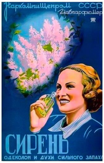 Рисунок 2. Реклама парфюма «Сирень»: скромный женский образ и единственное, кажущееся вполне достоверным обещание – сильного запаха