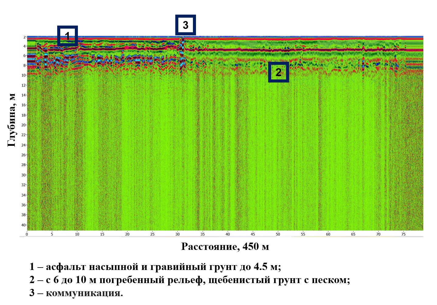 Рис. 4. Пример радарограммы в программе (георадар «Тритон-М». Город Петропавловск- Камчатский)