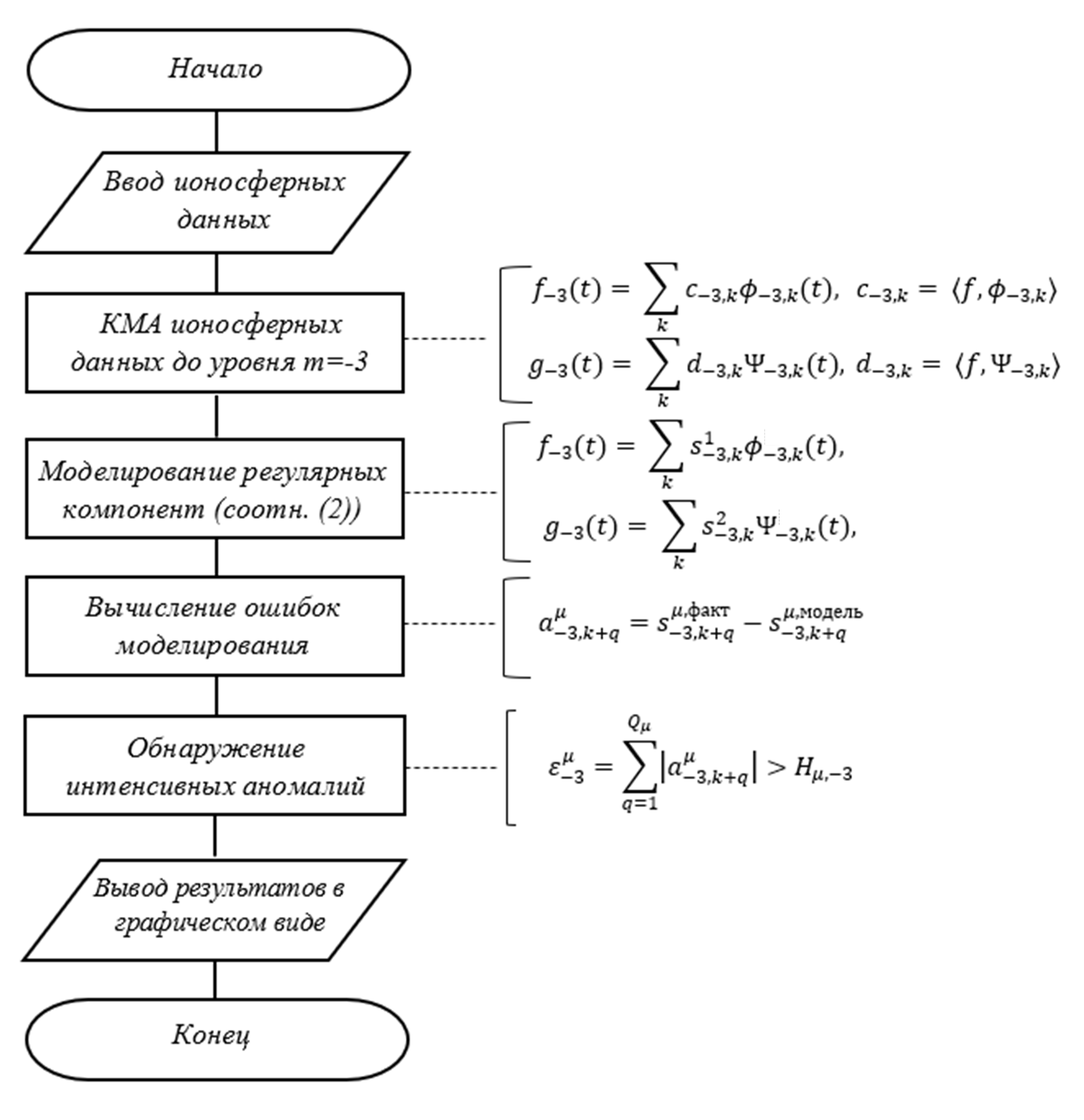 Рис. 1. Блок-схема алгоритма обнаружения интенсивных ионосферных аномалий