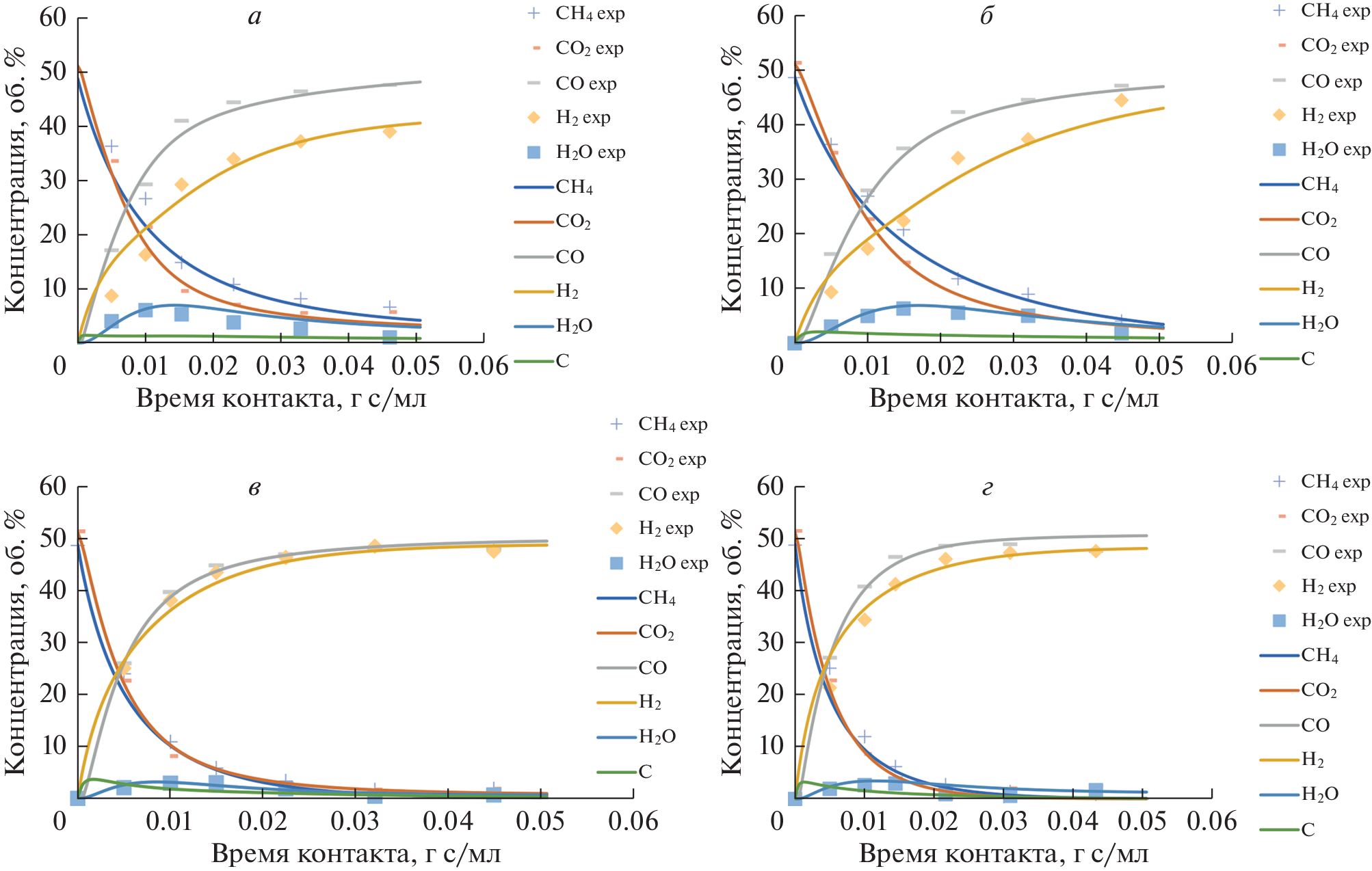 The article presents an analysis of the results of a kinetic study of dry reforming of methane (UCM) in reactors with traditional (TC) and membrane catalysts (MC). The kinetic experiment in reactors with MC and TC was performed in the temperature range of 820–900°C and the ratio CH4 : CO2 = 1 : 1. In the experiment, an intensification of the process of the methane cracking reaction was established, the rate constant of which increases by an order of magnitude. Such a difference in the results of the DRM on the studied catalysts are due to the intensification of mass transfer on the MC, which is based on the phenomenon of thermal slip. A mathematical description corresponding to the kinetic scheme of DRM process is proposed, and the rates constants of direct and reverse reactions in both reactors are found. In the DRM process, water gas is formed on the TC, and synthesis gas is formed on the MC. At TC, the DRM process is accompanied by the accumulation of carbon deposits (CD), and at MC this accumulation is absent. The DRM process on both catalysts is characterized by three main reactions (methane cracking, gasification of the CD with carbon dioxide and/or water vapor and the reverse water gas shift), which were assumed to be reversible under experimental conditions. It turned out that on TC the gasification of the CD occurs in the reverse reaction of methane cracking, and on the MC—in the reactions of gasification by water vapor (mainly) and carbon dioxide. The process on the MC is characterized by irreversible reactions of methane cracking, gasification of the CD with water vapor and carbon dioxide. The reverse water gas shift reaction on the MC remains reversible, and its rate constants of the direct and inverse reactions turned out to be an order of magnitude lower than similar constants on the TC.