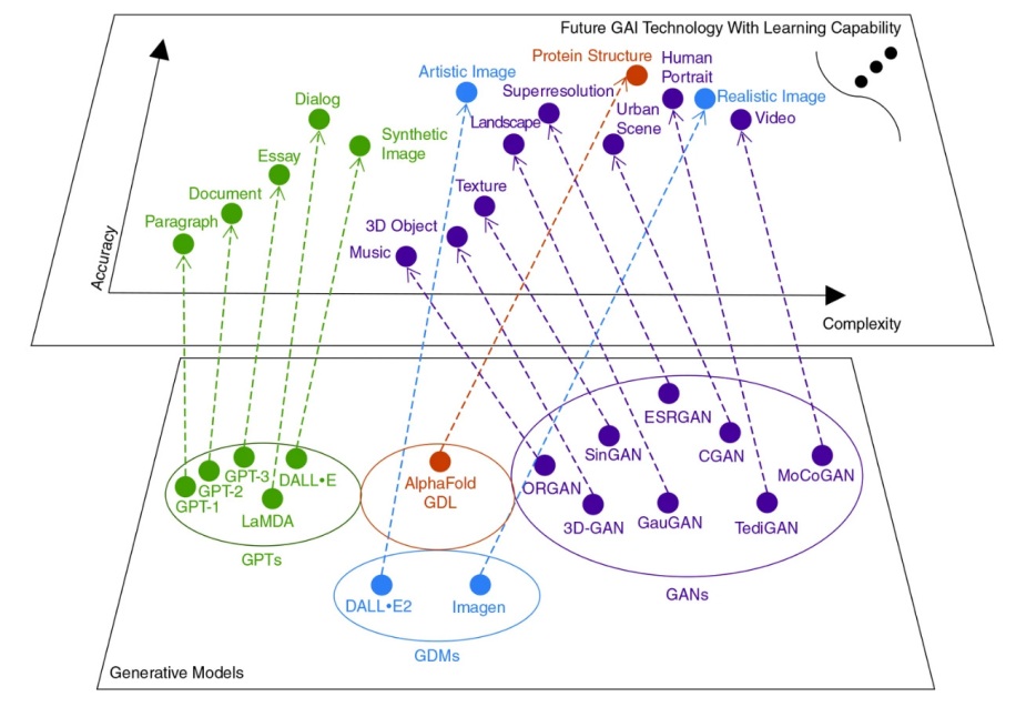 Рисунок 1 – Ландшафт ГИИ: генеративные модели и артефакты [20] (визуализация классификации множества моделей ГИИ)