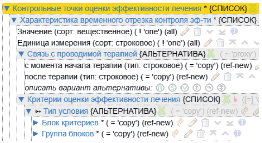 Рисунок 7 – Структура раздела Контрольные точки оценки эффективности лечения