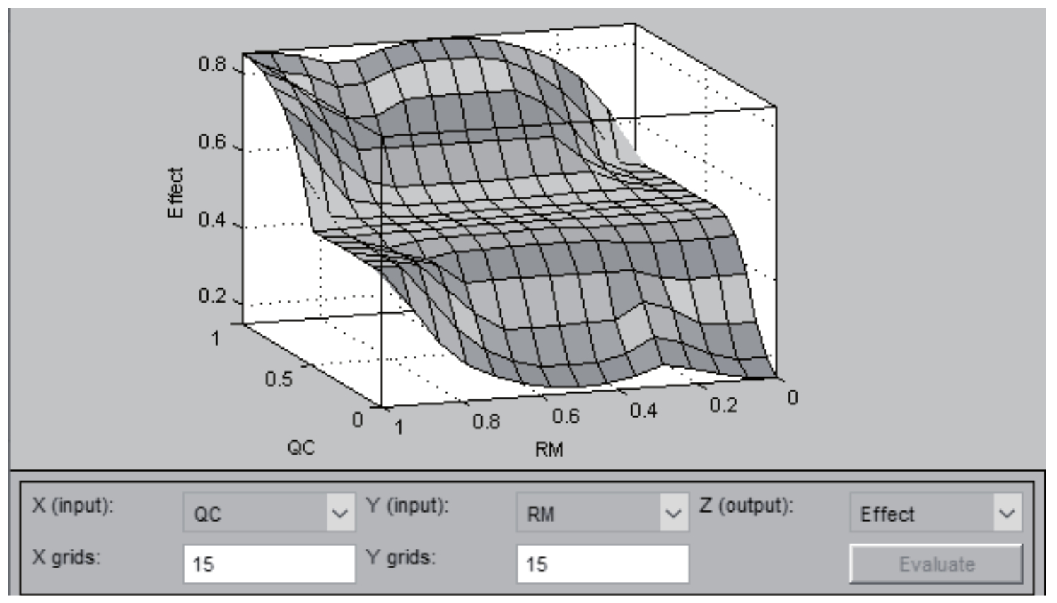 Figure 2 – Visualization of the fuzzy inference surface of the model under consideration for the PM and RM