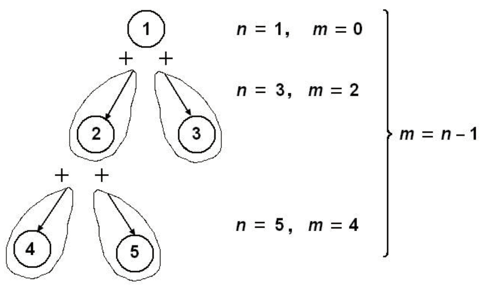 Property 1. The number of CG arcs is one less than the number of its vertices, m=n-1, with n1 and n2.
