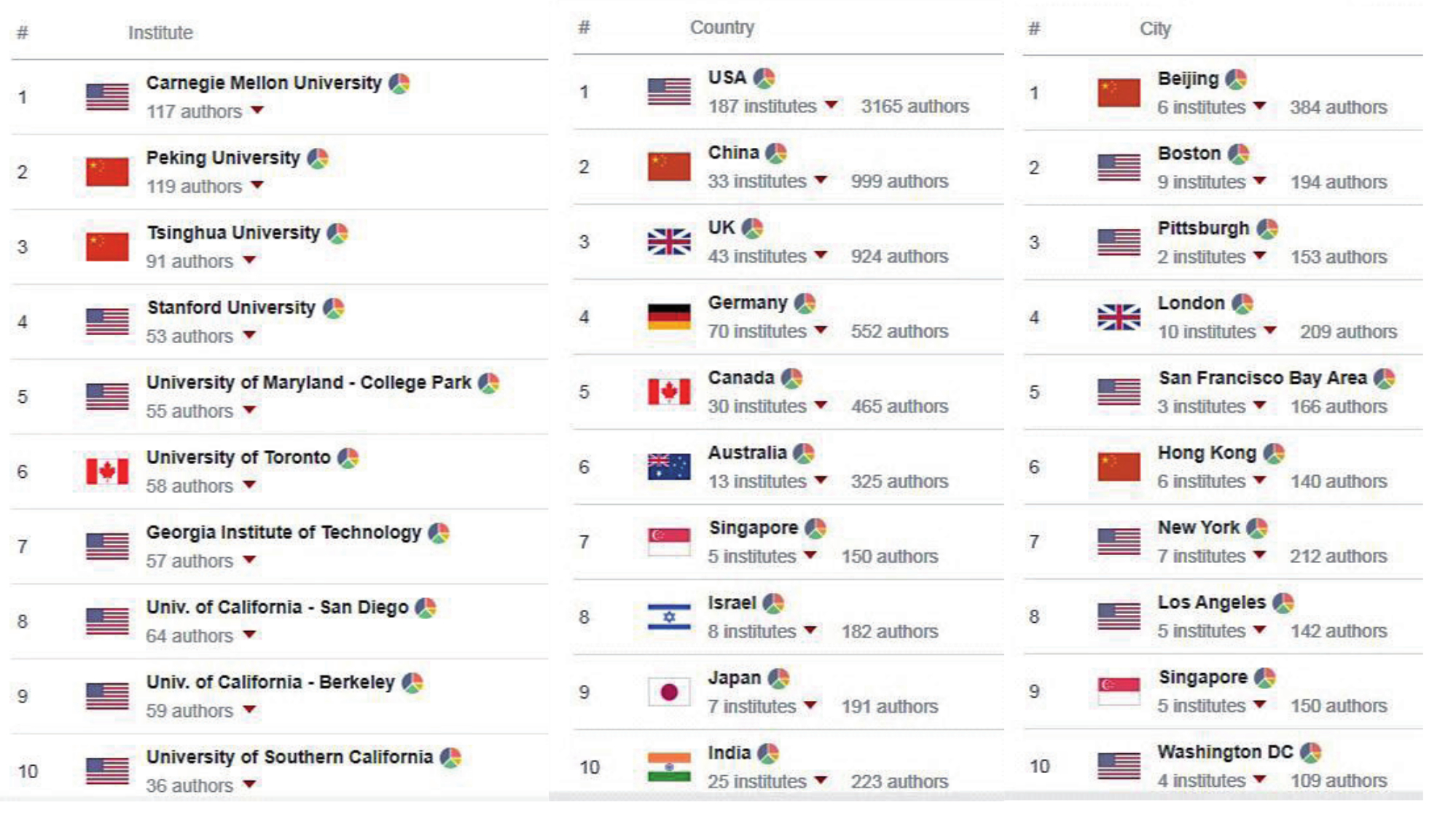 11 AIRankings (https://airankings.org /) - рейтинг, основанный на показателях, который дает представление о возможностях исследований в области ИИ во всем мире на различных уровнях (авторы, институты, города, страны…).