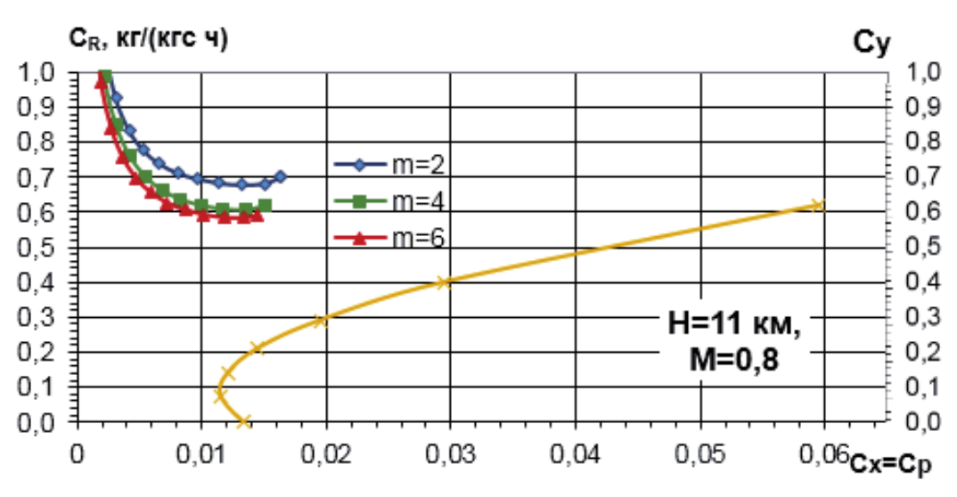 Рисунок 13 – Результат согласования степени двухконтурности двигателя и профиля крыла