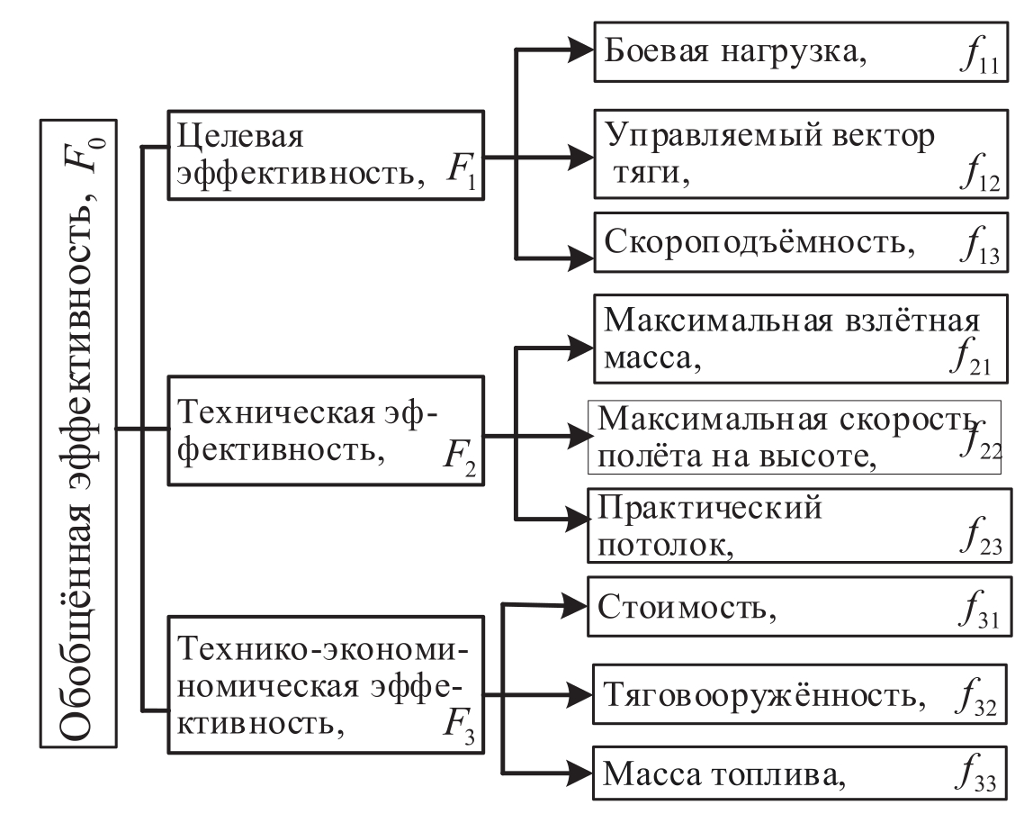Рисунок 2 – Иерархическое дерево критериев оценки эффективности самолётов