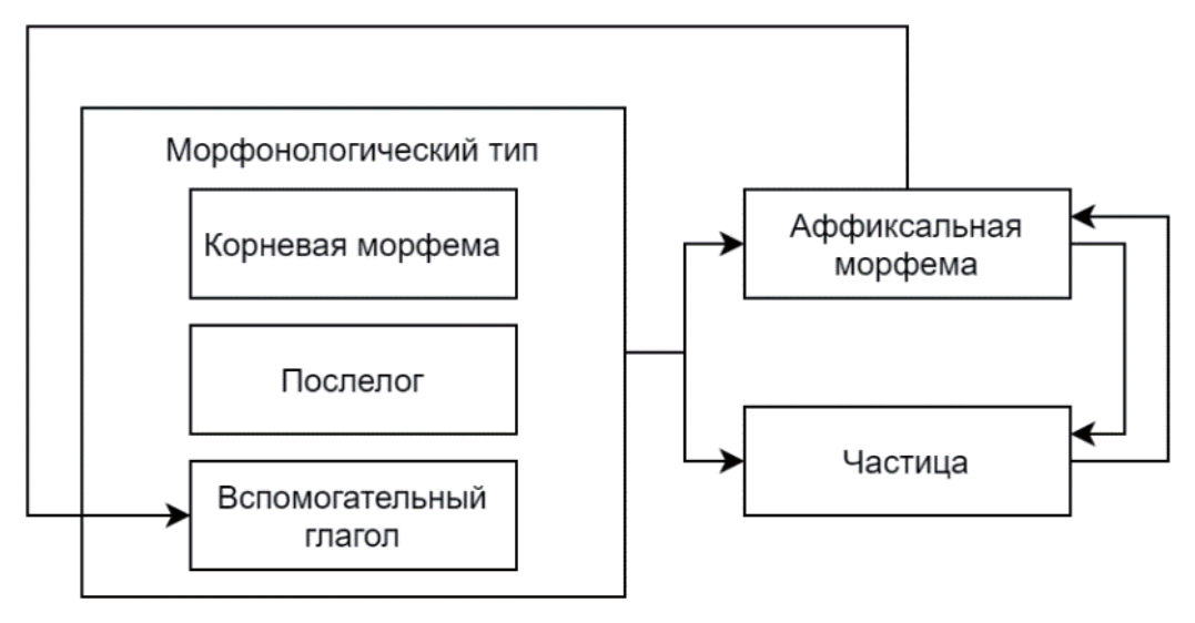 Языковые единицы связаны между собой морфотактическими правилами для представления морфологического уровня языка (рисунок 7).