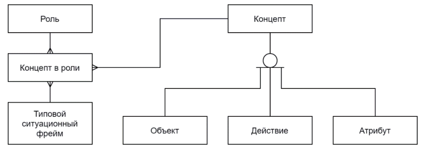- подграф библиотеки типовых ситуационных фреймов, образующий фреймовые структуры для описания семантических типовых ситуаций и построенный по аналогии с известным лингвистическим ресурсом FrameNet;