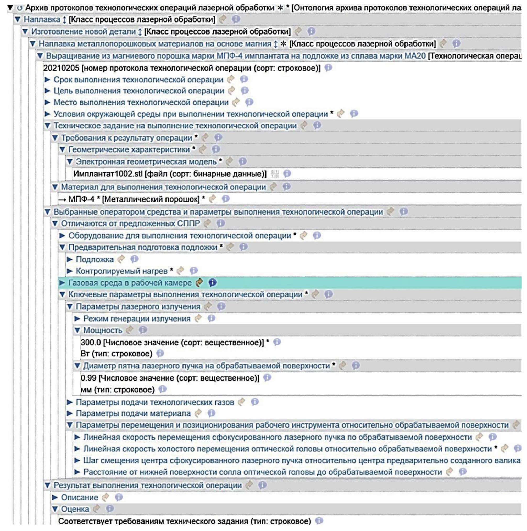 Рисунок 7 – Фрагмент онтологии архива протоколов технологических операций лазерной обработки