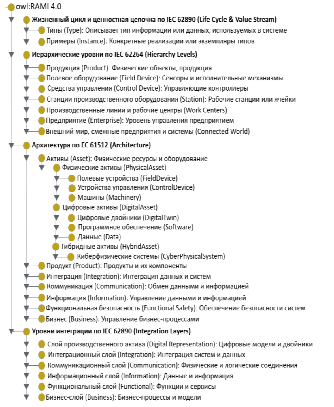 Для включения созданных концептов в структуру RAMI 4.0 произведено отнесение классов и предикатов согласно требованиям стандартов (таблица 1):