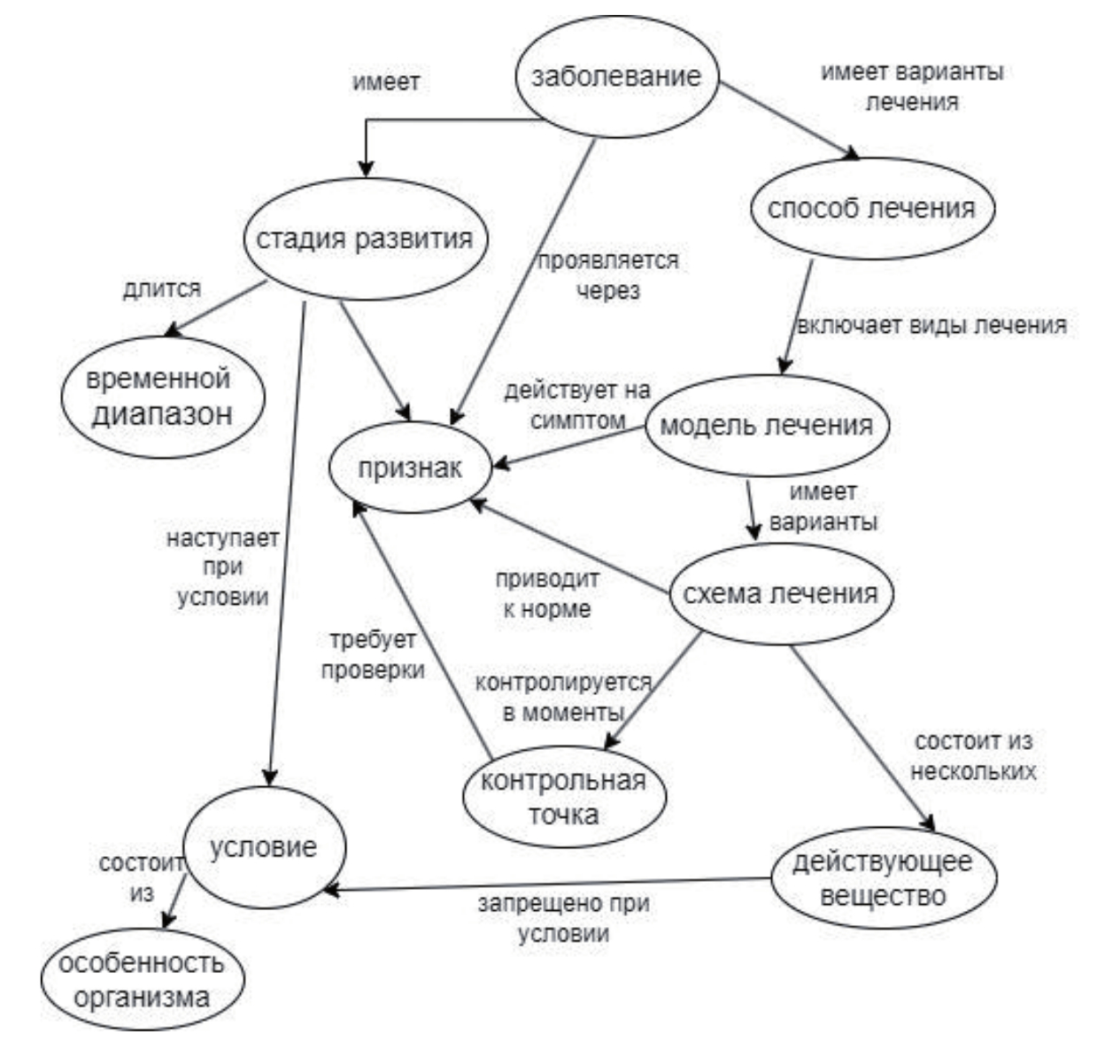Рисунок 2 – Фрагмент онтологического графа течения и лечения заболевания в иерархическом виде