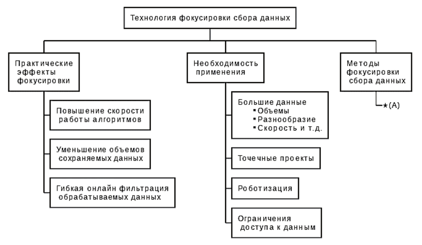 Рисунок 1 – Концептуальная схема технологии фокусировки сбора данных (*(A) обозначает переход к детальному представлению методов фокусировки данных – показана на рисунке 5)