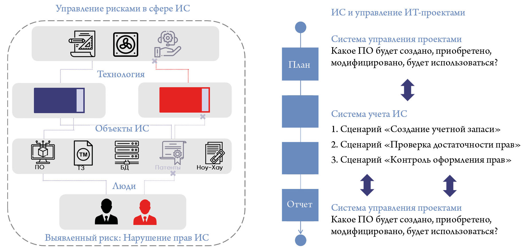 Эта проблематика представляется одним из самых актуальных направлений развития бизнеса, особенно в современных условиях цифровой трансформации, когда количество объектов ИС растет экспоненциально, программный код становится основой видоизмененных бизнес-процессов, нехватка квалифицированных человеческих ресурсов и их «текучесть» наряду с возрастающей ролью технологий искусственного интеллекта создают объективные условия, в которых крайне сложно «вручную» принимать управленческие решения в сфере оборота ИС и технологий.