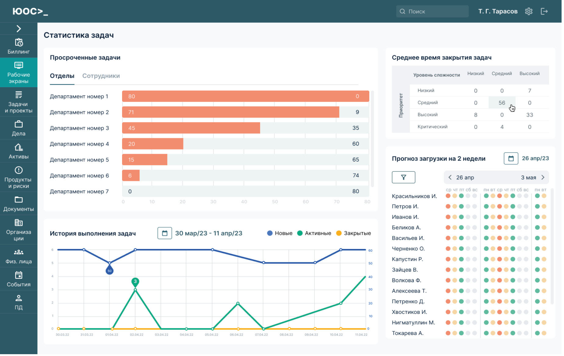 Рисунок 9. Пример рабочего экрана ЮОС по управлению юристами