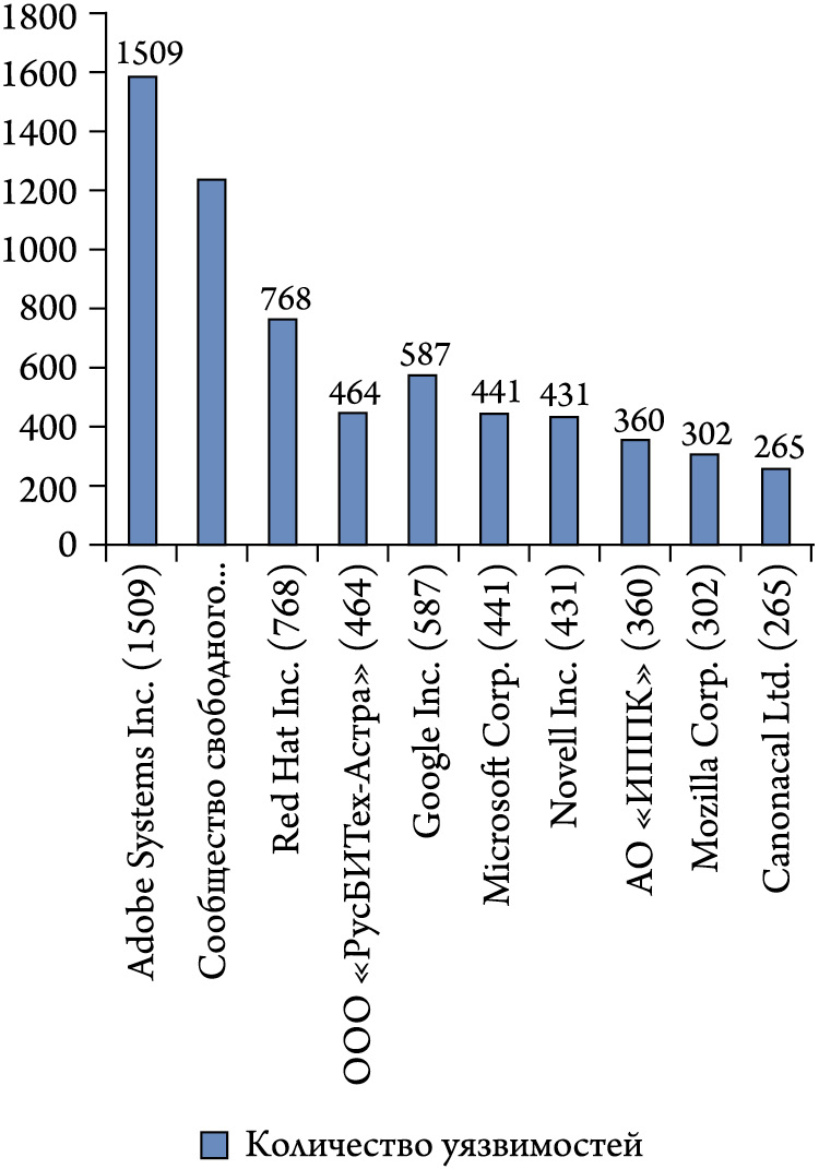 Статистика критических уязвимостей в ПО различных производителей представлена на рис. 2 [34].