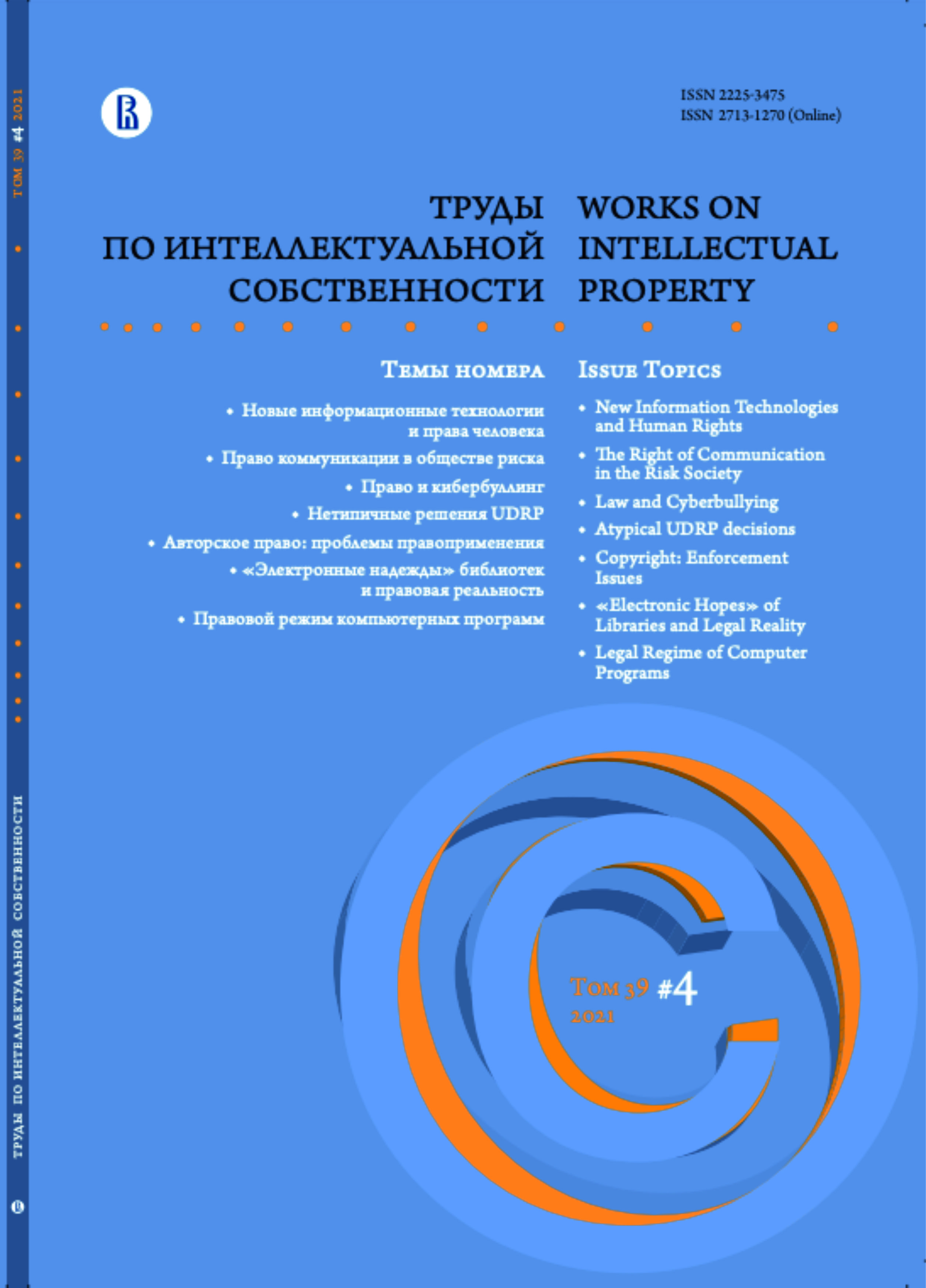 Журнал “Труды по интеллектуальной собственности” является научным журналом НИУ ВШЭ и посвящён актуальным проблемам авторских, смежных, культурных и информационных прав, правового регулирования киберпространства, правового обеспечения развития технологий искусственного интеллекта. Журнал рецензируется в ВАК, а также входит входит в российскую систему научного цитирования РИНЦ, имеет идентификацию в базе DOI. В журнале публикуются работы ведущих российских и зарубежных исследователей в области прав интеллектуальной собственности, информационного права, права искусственного интеллекта, культурных прав. Статьи выходят на русском и английском языке, также имеется возможность публикации статей на французском языке.