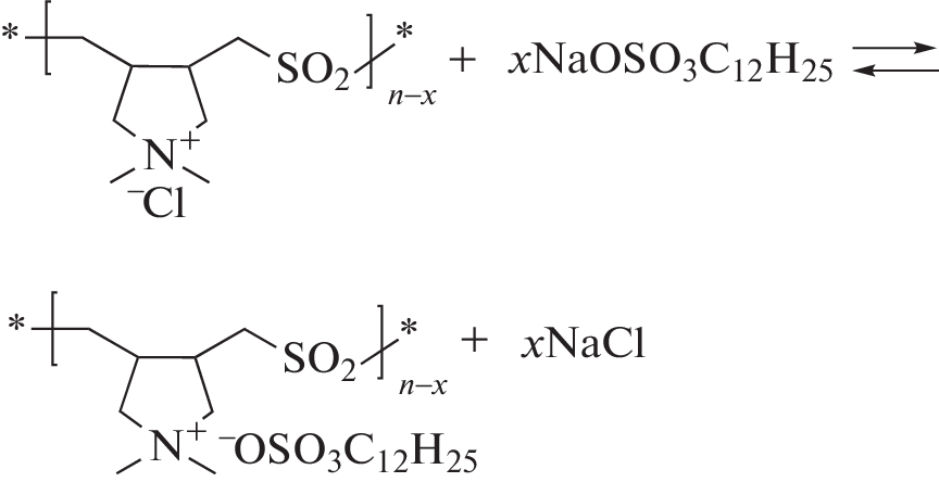 The formation of polymer–colloid complexes by the interaction of N,N'-diallyl-N,N'-dimethylammonium chloride–sulfur dioxide copolymers of various molecular weight and sodium dodecyl sulfate is studied. The complexes are characterized by turbidimetric titration and laser light diffraction/scattering. The average particle size of polymer–colloid complexes varies in the range of 150‒200 nm depending on the composition of the reaction mixture and the molecular weight of the polyelectrolyte. The critical aggregation concentrations of sodium dodecyl sulfate in the presence of various molecular weight copolymers are determined. It is shown that the molecular weight of the polycation strongly affects boundaries of the region, in which the phase of polymer–colloid complexes appears, and the sizes of their particles. The ability of complex particles to solubilize molecules of substances poorly soluble in water is evaluated.