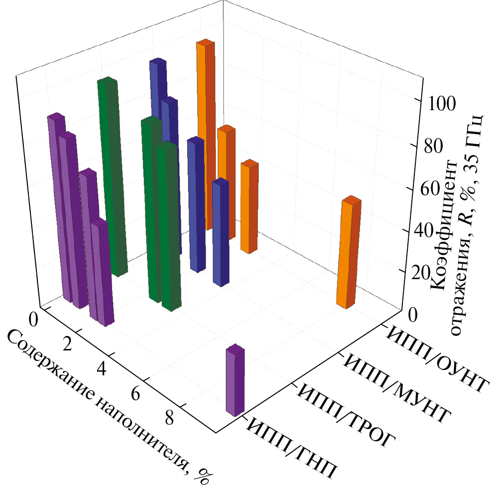 Особый интерес вызывают полиморфы наноуглерода – нанотрубки, графеновые нанопластины, фуллерены и наноалмазы. Эти наночастицы отличаются размерностью, типом гибридизации, энергетическими спектрами и, соответственно, транспортными свойствами [8–12]. Композиционные материалы на основе полипропилена и наноразмерных углеродных наполнителей представляют значительный интерес для науки и промышленности. Уникальные свойства и широкий спектр применений делают их перспективными материалами для будущих технологических разработок. В зависимости от структуры полиморфы наноуглерода могут иметь металлическую или полупроводниковую проводимость. Кроме того, они как наполнители являются иерархическими материалами с несколькими характерными масштабами. Все это отражается на свойствах полимерных композитов, наполненных такими уникальными частицами.