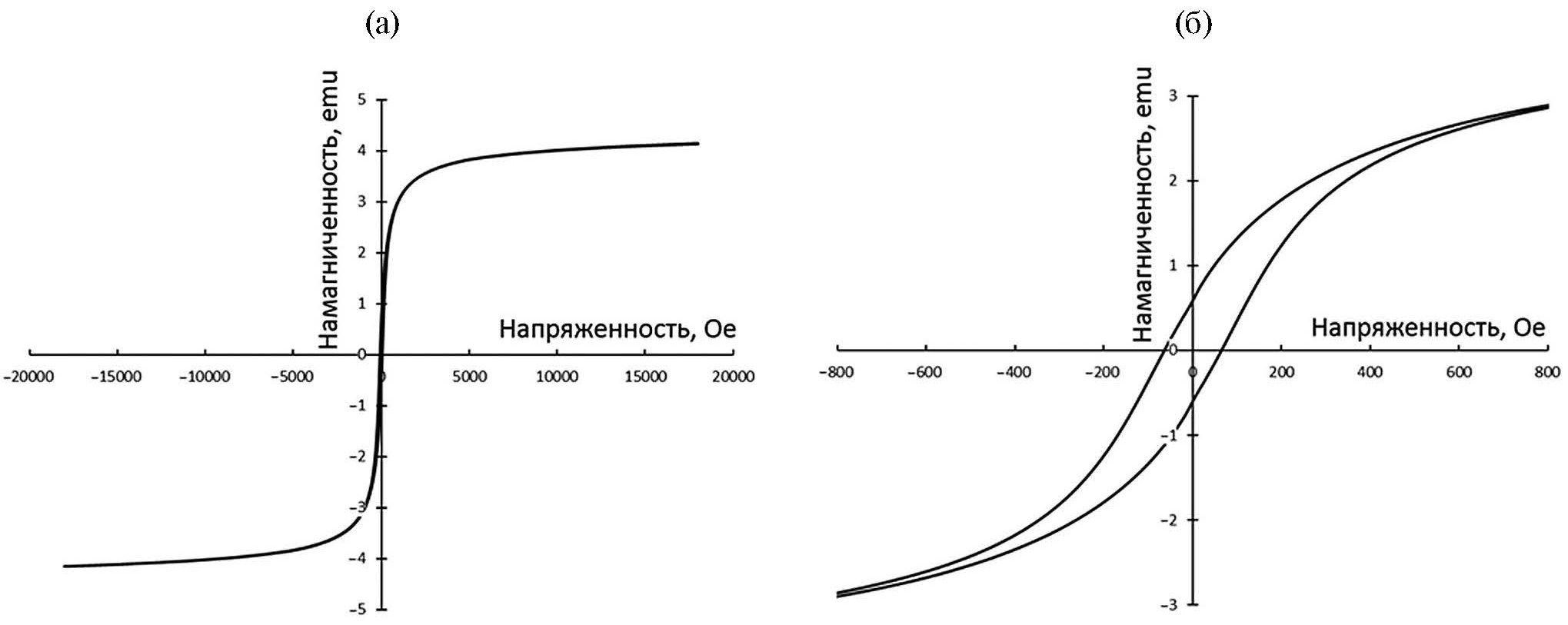 Магнитные измерения выполняли на вибрационном магнетометре “Lake Shore 7410” при комнатной температуре в интервале напряженности поля от +18000 до –18000 Э.