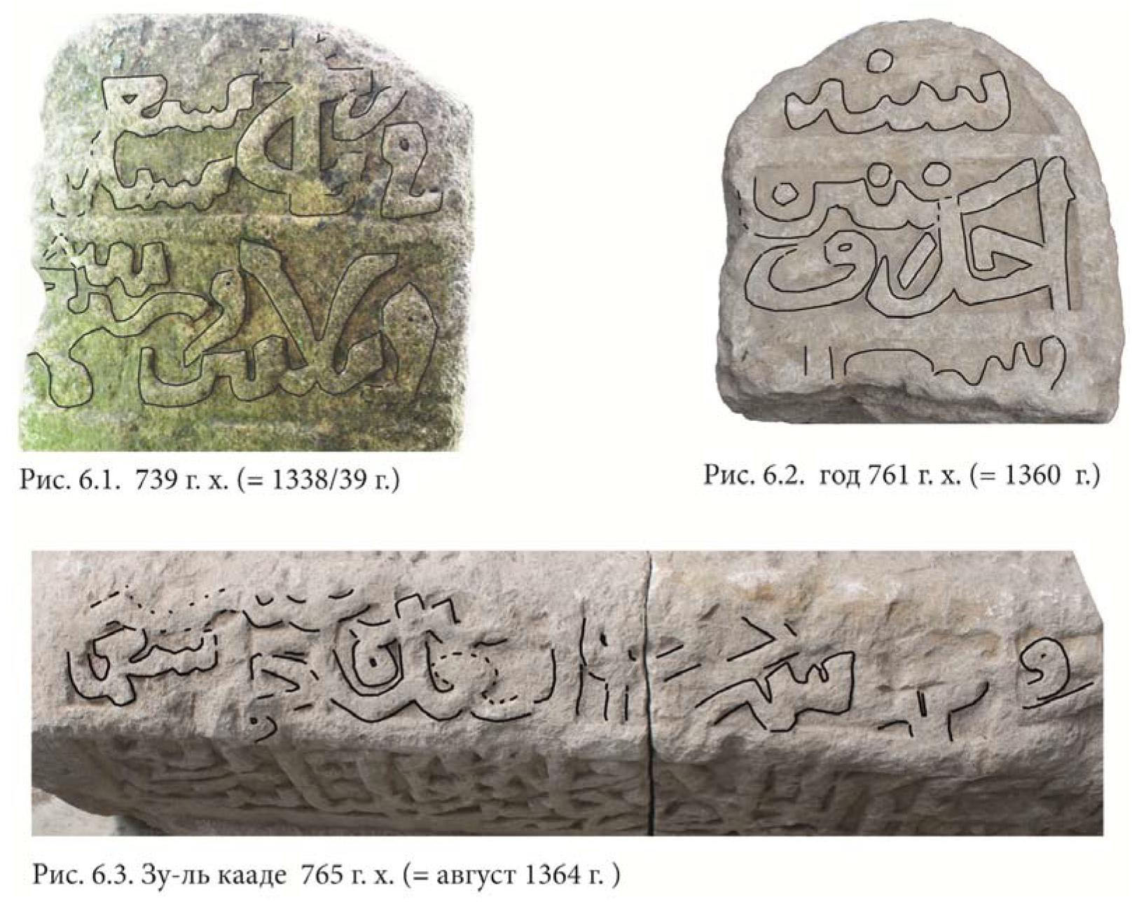 6.1. 739 г.х. (= 1338/39 г.); 6.2. год 761 г.х. (= 1360 г.); 6.3. Зу-ль кааде 765 г.х. (= август 1364 г.)