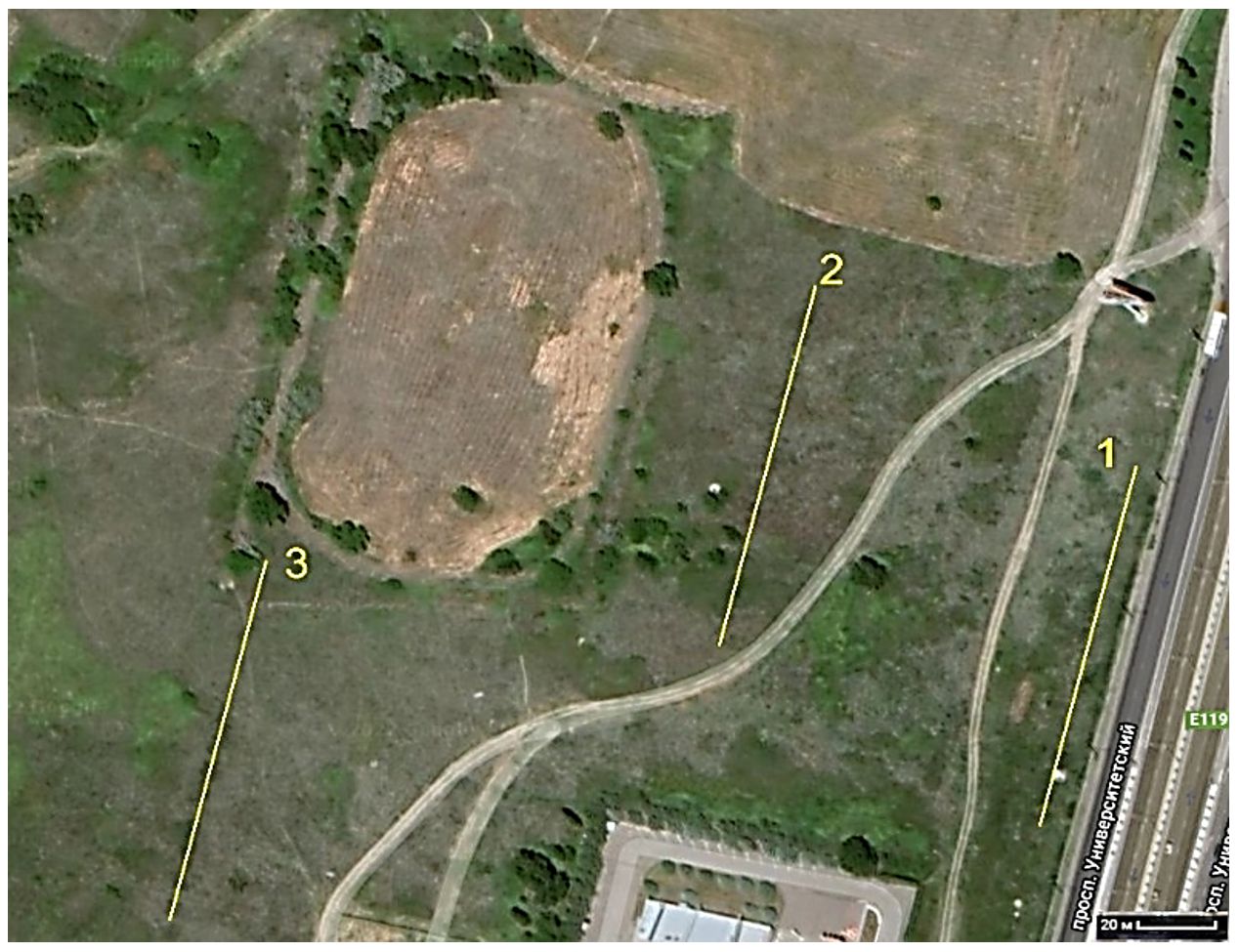 Поскольку сухая степь является наиболее характерным зональным ландшафтом в регионе исследования на широте г. Волгограда, дляисследованийаранеофауныбыли выбраны три ключевых участка, находящихся в сухостепном биотопе, с расположенными на них разными источниками загрязнения окружающей среды: