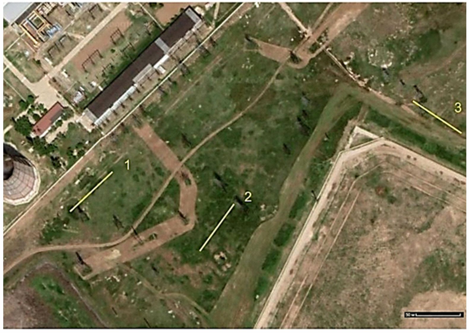 Расположение почвенных ловушек на полигоне «ТЭЦ-3» представлено на рисунке 3. Древесная растительность полигона ТЭЦ-3 представлена тополем чёрным (Populus nigra L.) и вязом (Ulmus sp.), травянистая – полынями (Artemisia spp.), прутняком (Bassia prostrata (L.) Beck), житняком (Agropyron cristatum (L.) Gaertn.), пыреем (Elytrigia repens (L.) Nevski).