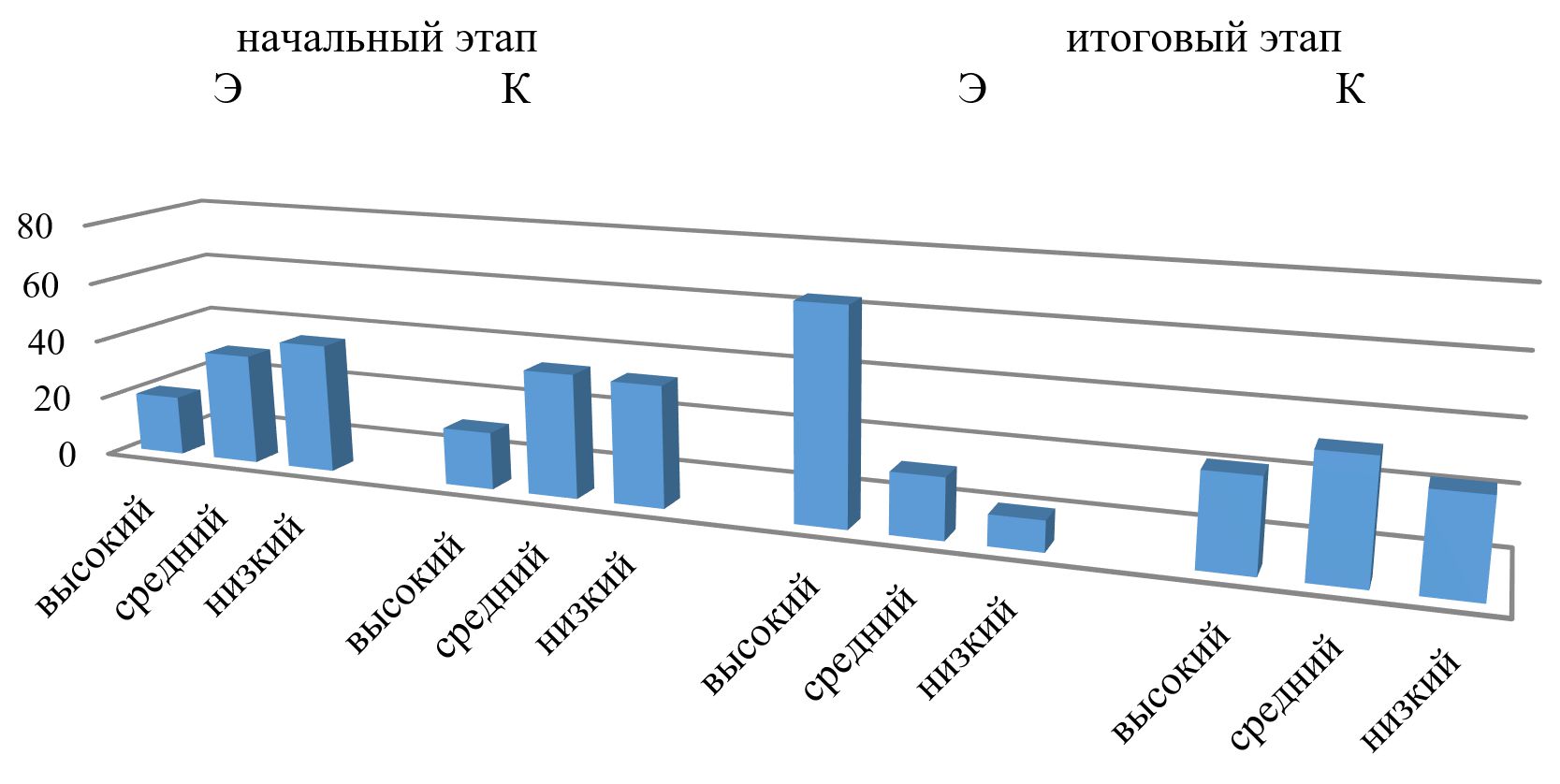 Выяснено, что в экспериментальной группе произошли значительные позитивные изменения по перераспределению уровней сформированности исследуемой готовности (диаграмма). Эмпирические методы позволяют оценить роль инновационных технологий в формировании коммуникативной готовности будущих инженеров в процессе профессионального становления.