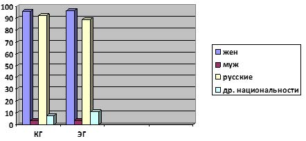 Для проведения экспериментальной работы группы были разделены на экспериментальную (ЭГ) и контрольную (КГ), близкие по разнообразию национальностей: