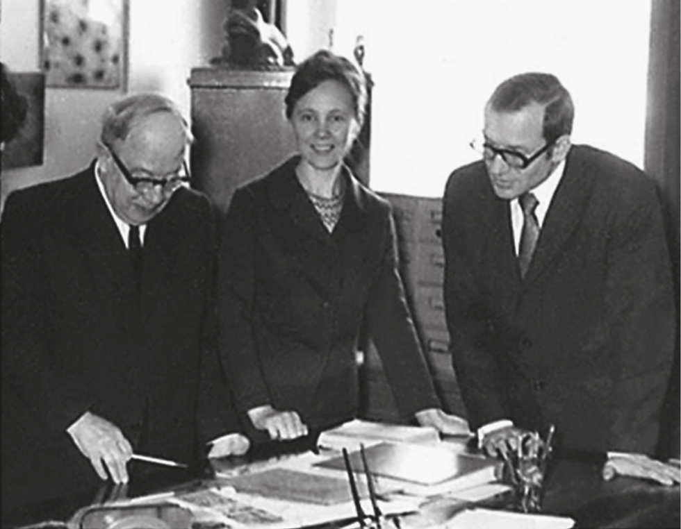 Рис. 7. Профессор Н.А. Шевченко с учениками — Д.Д. Аравийской и В.Г. Гололобовым.