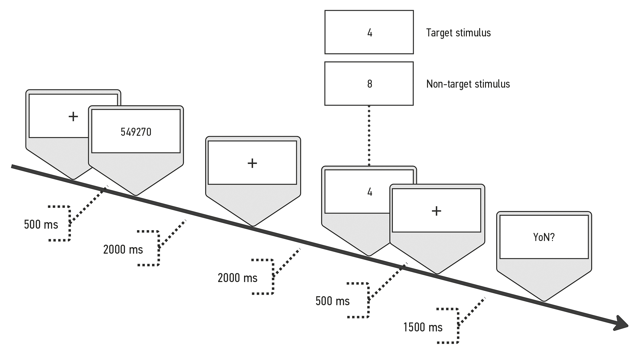 - Presentation of the control stimulus — target or non-target (0.5 s).