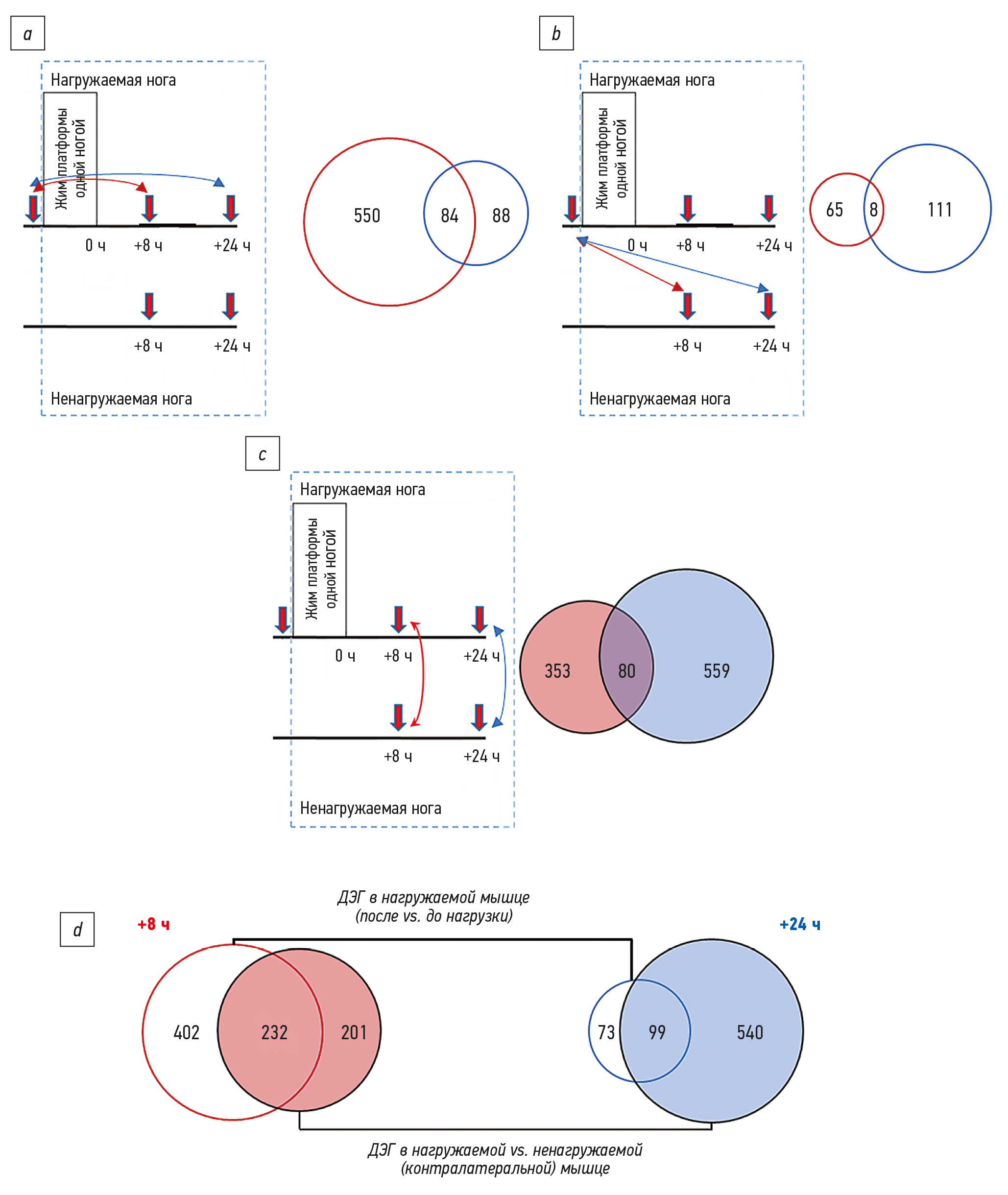 Цель исследования — оценка изменений протеомного профиля (количественный панорамный масс-спектрометрический анализ) скелетной мышцы и корреляции этих изменений с экспрессией соответствующих мРНК (секвенирование РНК) до и после 12-недельных силовых тренировок, а также с изменениями транскриптома через 8 и 24 ч после однократной силовой нагрузки одной ногой.