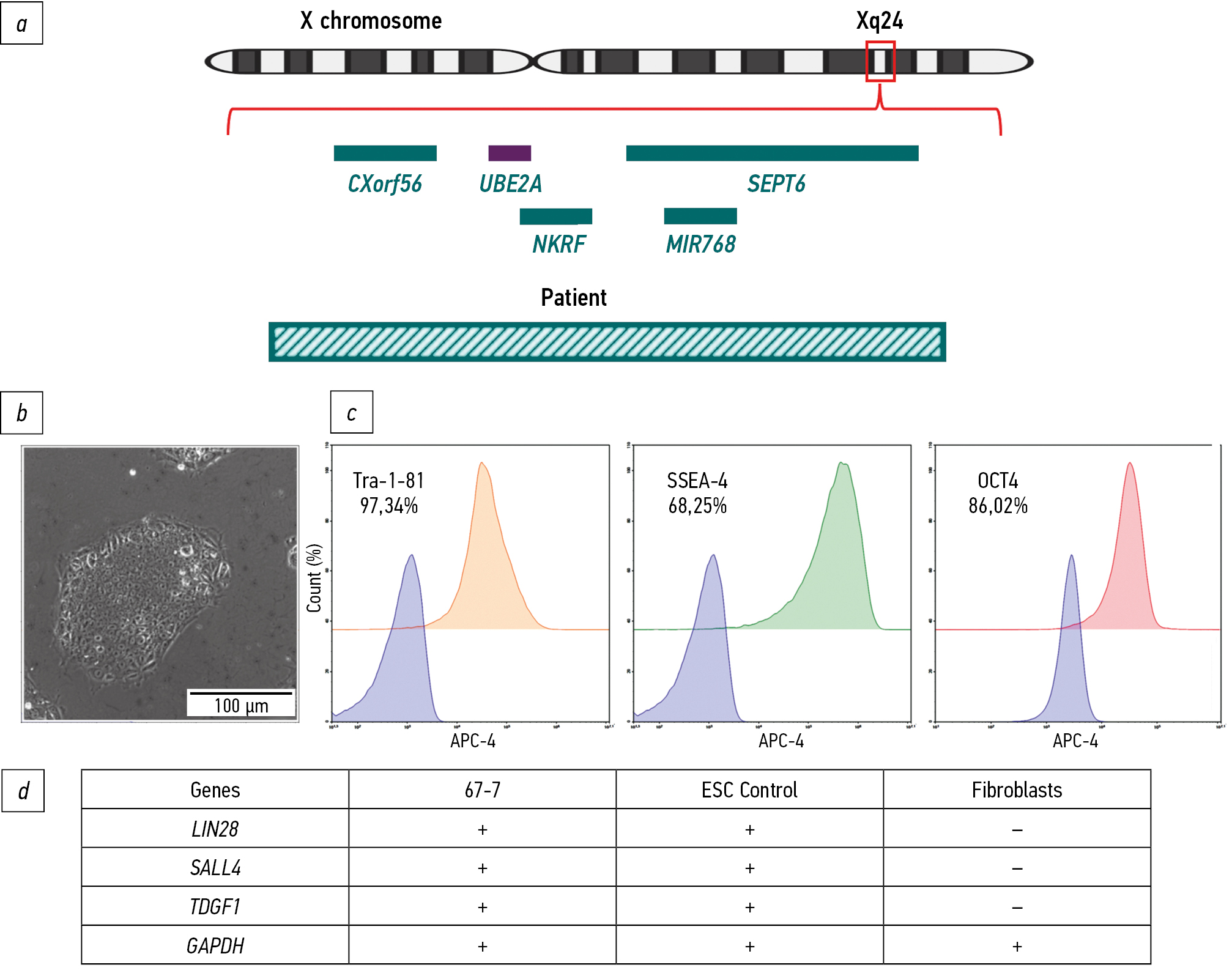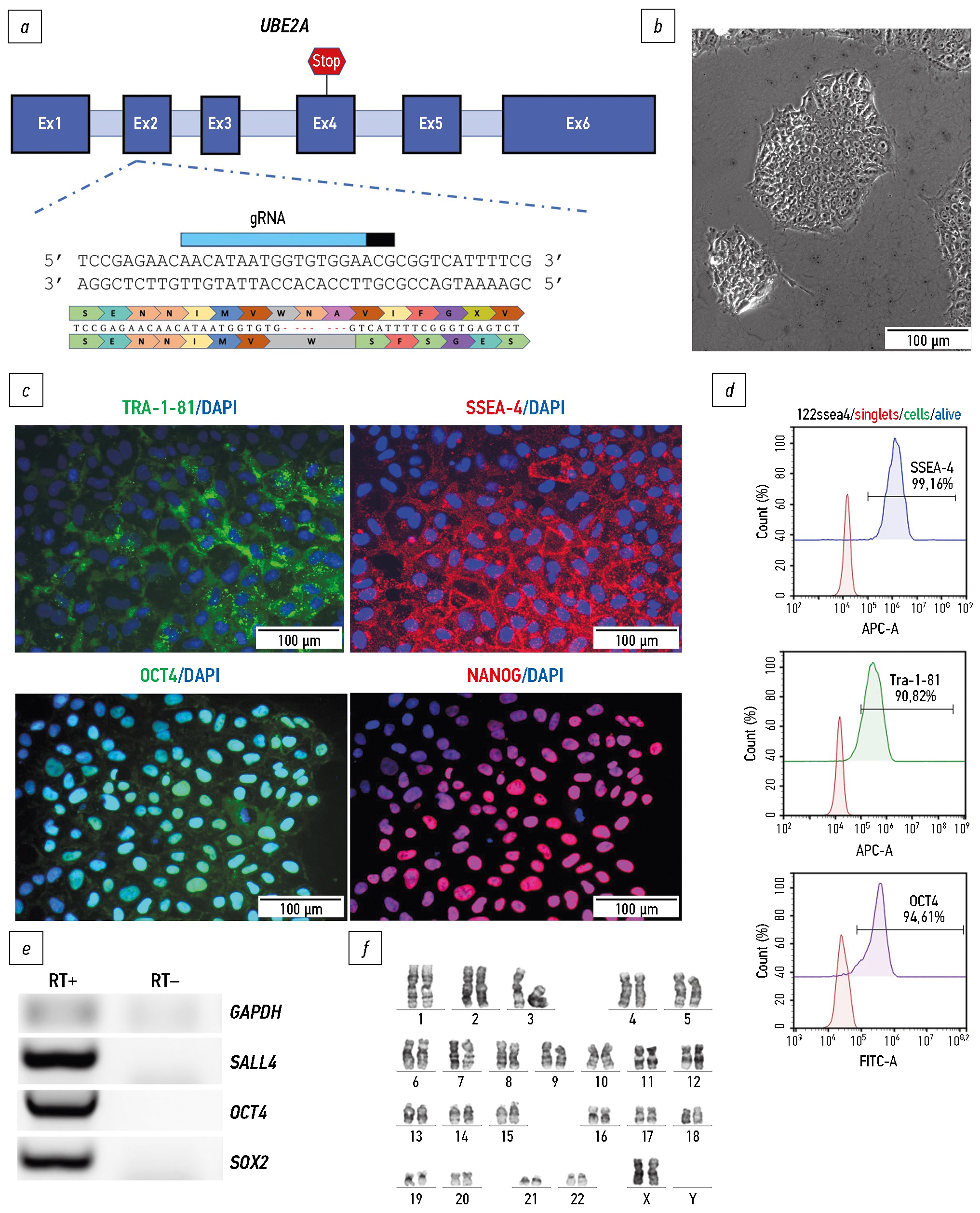 RESULTS: The obtained iPSCs demonstrate an ESC-like morphology. They express pluripotent cell markers OCT4, SOX2, SSEA-4, and TRA-1-81 and have normal karyotypes. iPSCs with UBE2A knockout or hyperexpression had significantly increased nuclei size compared with the isogenic control.