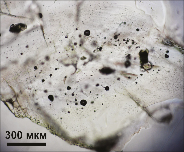 Для определения состава расплава анализировались гомогенные стекла, образовавшиеся при полном переплавлении (и последующей закалке) силикатного содержимого первичных расплавных включений во вкрапленниках в ходе термометрических экспериментов в микротермокамере. После гомогенизации силикатного содержимого и закалки включения могут состоять полностью из гомогенного стекла или содержать газовый пузырек.