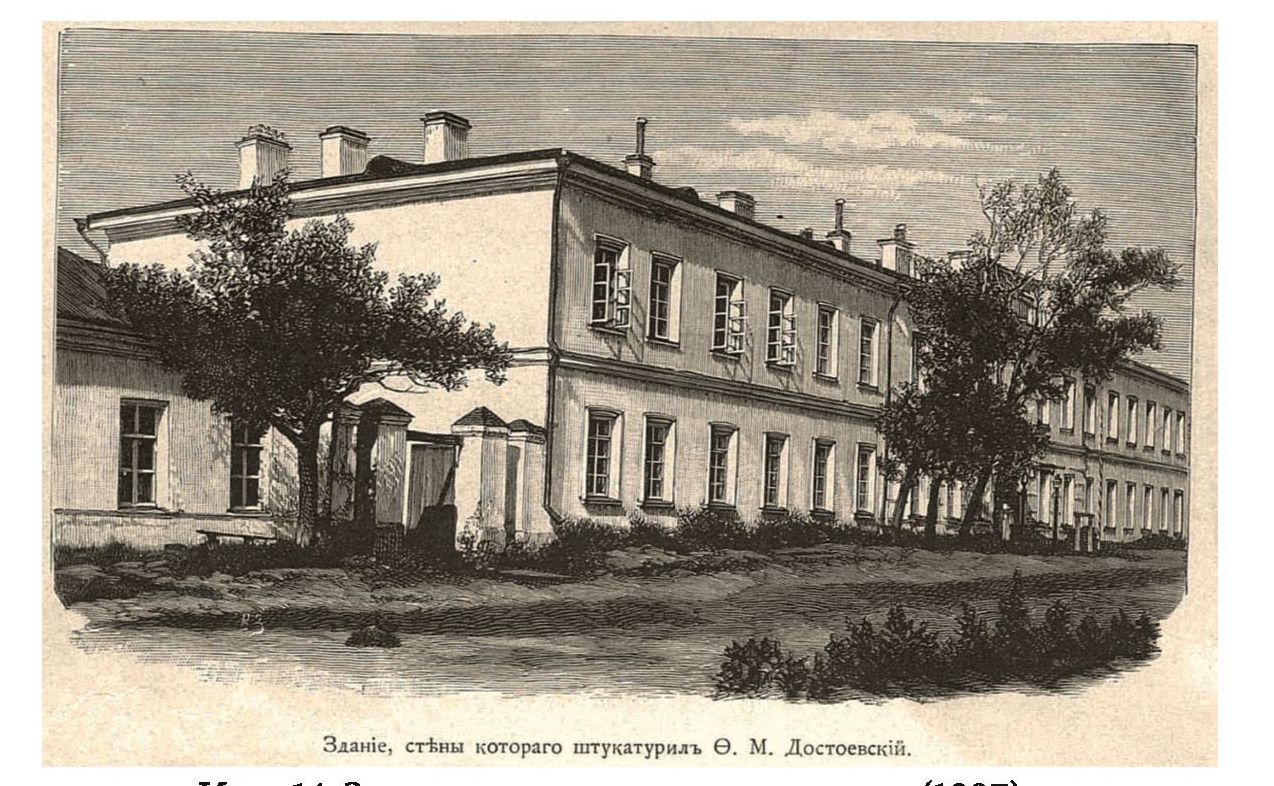 Приходилось Достоевскому работать и на ремонте крепостных сооружений. Так, согласно существующей легенде14, он участвовал в отделочных работах здания военно-окружного суда [15] . Снимок дома был опубликован в конце XIX в. журналом «Всемирная иллюстрация»: