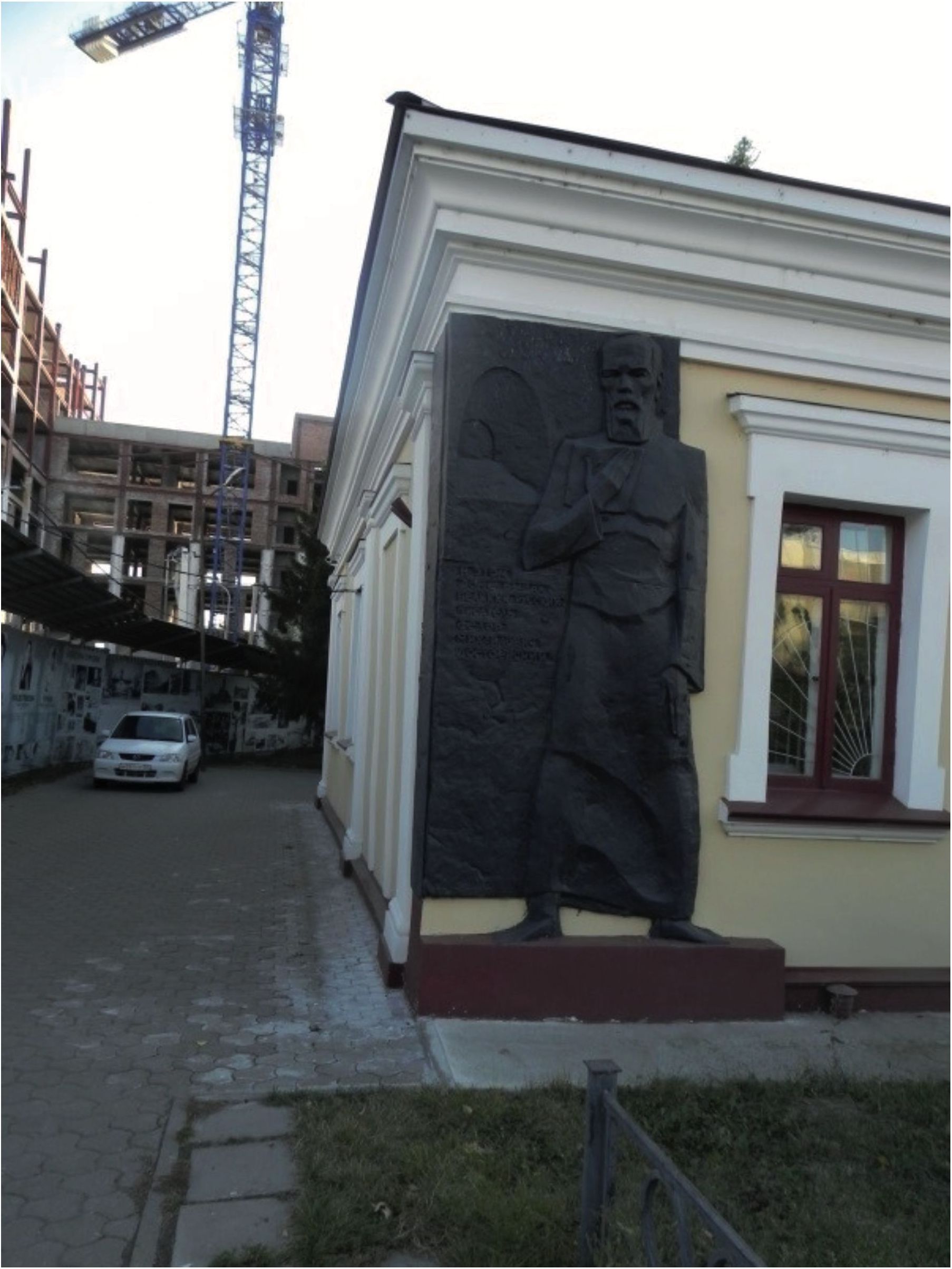 15 В связи с этим в среде омских краеведов и реставраторов в 1980-х гг. возникла идея изобразить Достоевского со штукатурным инструментом у фасада здания. Серьезного воплощения и обсуждения эта идея, однако, не получила, существуя как городская байка.