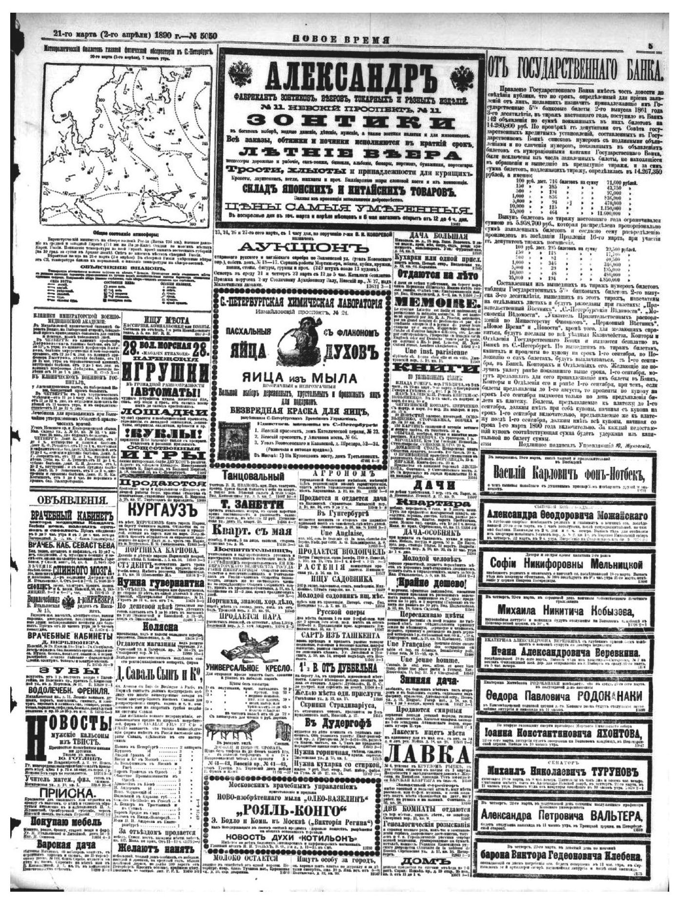 Илл. 2. Страница из газеты «Новое время» (№ 5050 за 1890 г.), в которой был размещен некролог об И. А. Веревкине