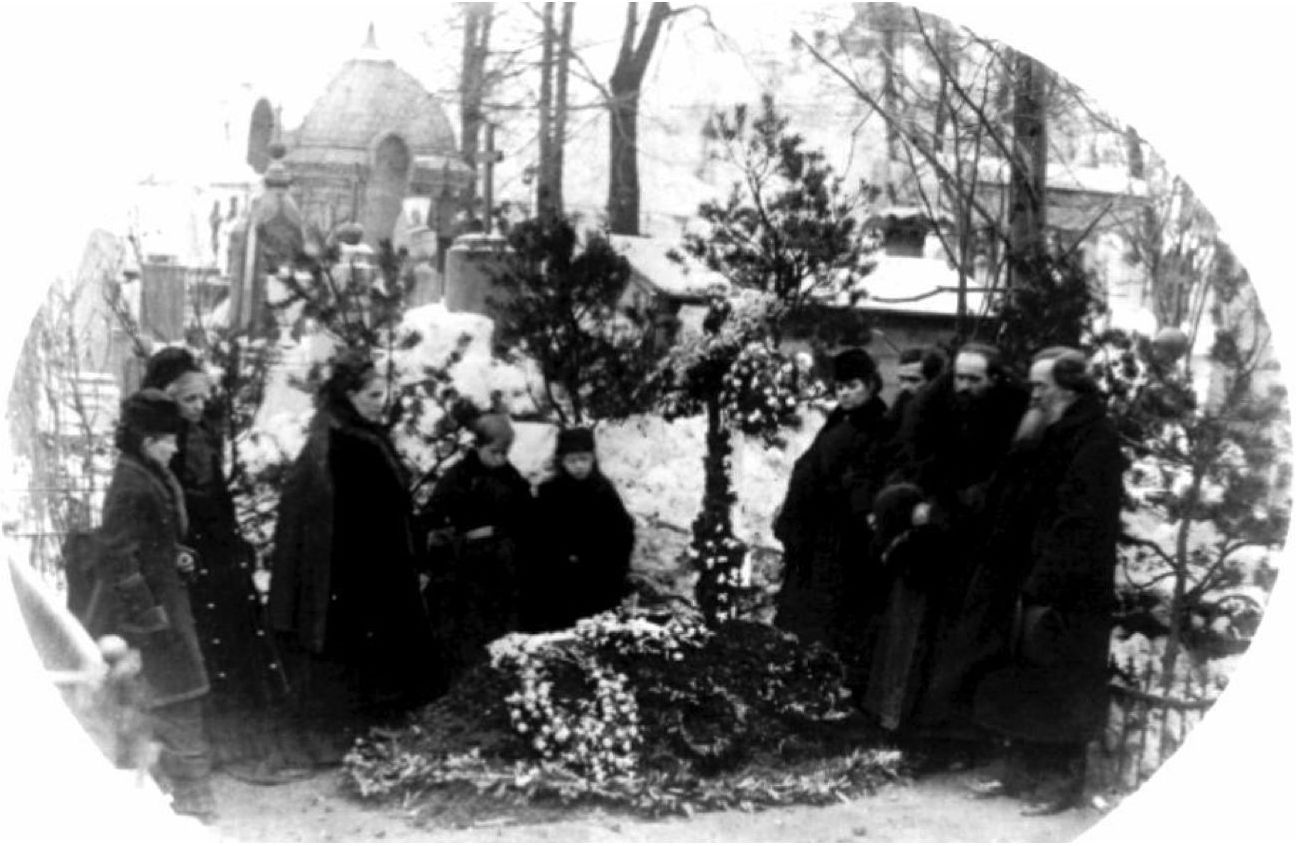 Fig. 3. The widow and children of F. M. Dostoevsky at his grave. Photo by V. Ya. Reinhardt