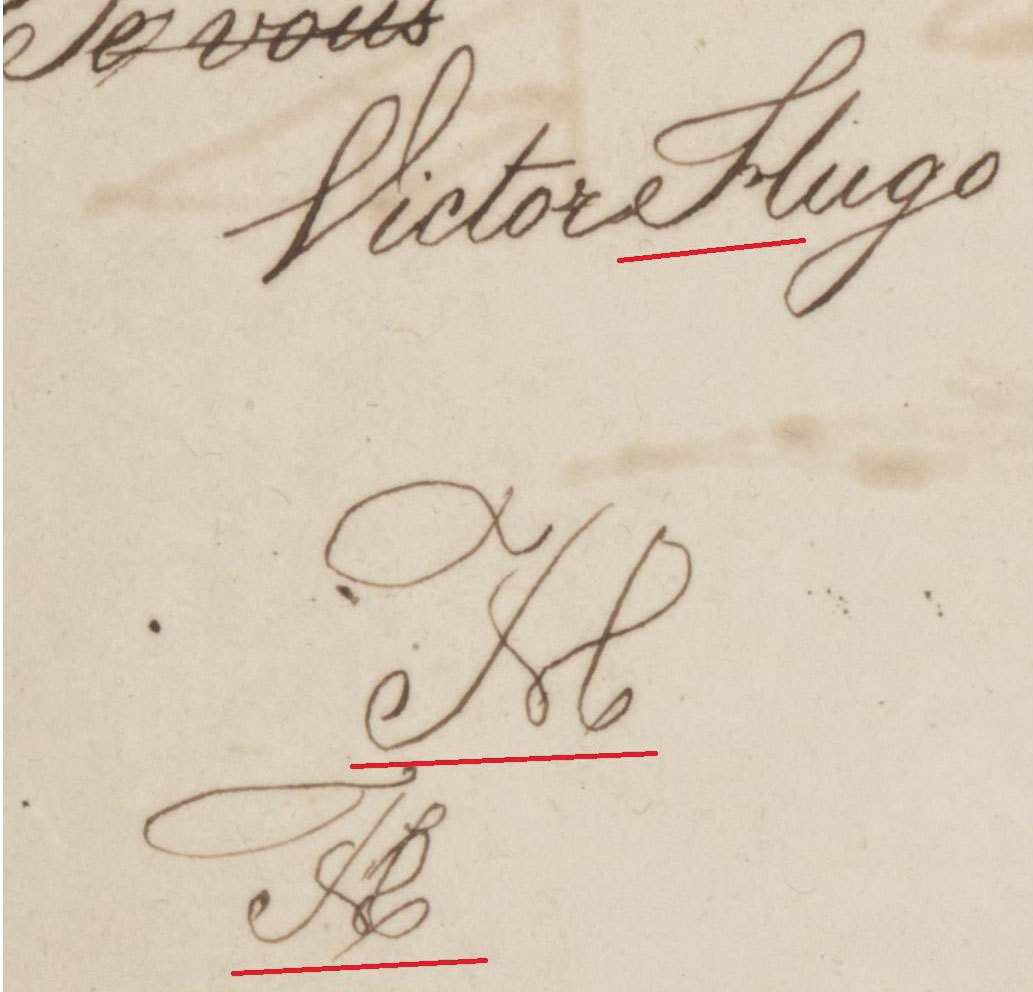 Буква «H» как пропись появляется в различных черновых набросках — в частности, к роману «Бесы». Например, в обычном написании и в вензеле из букв «V» и «H», начальных от «Victor Hugo» (ОР РГБ. Ф. 93.I.1.5. С. 5) (см. Илл. 4).