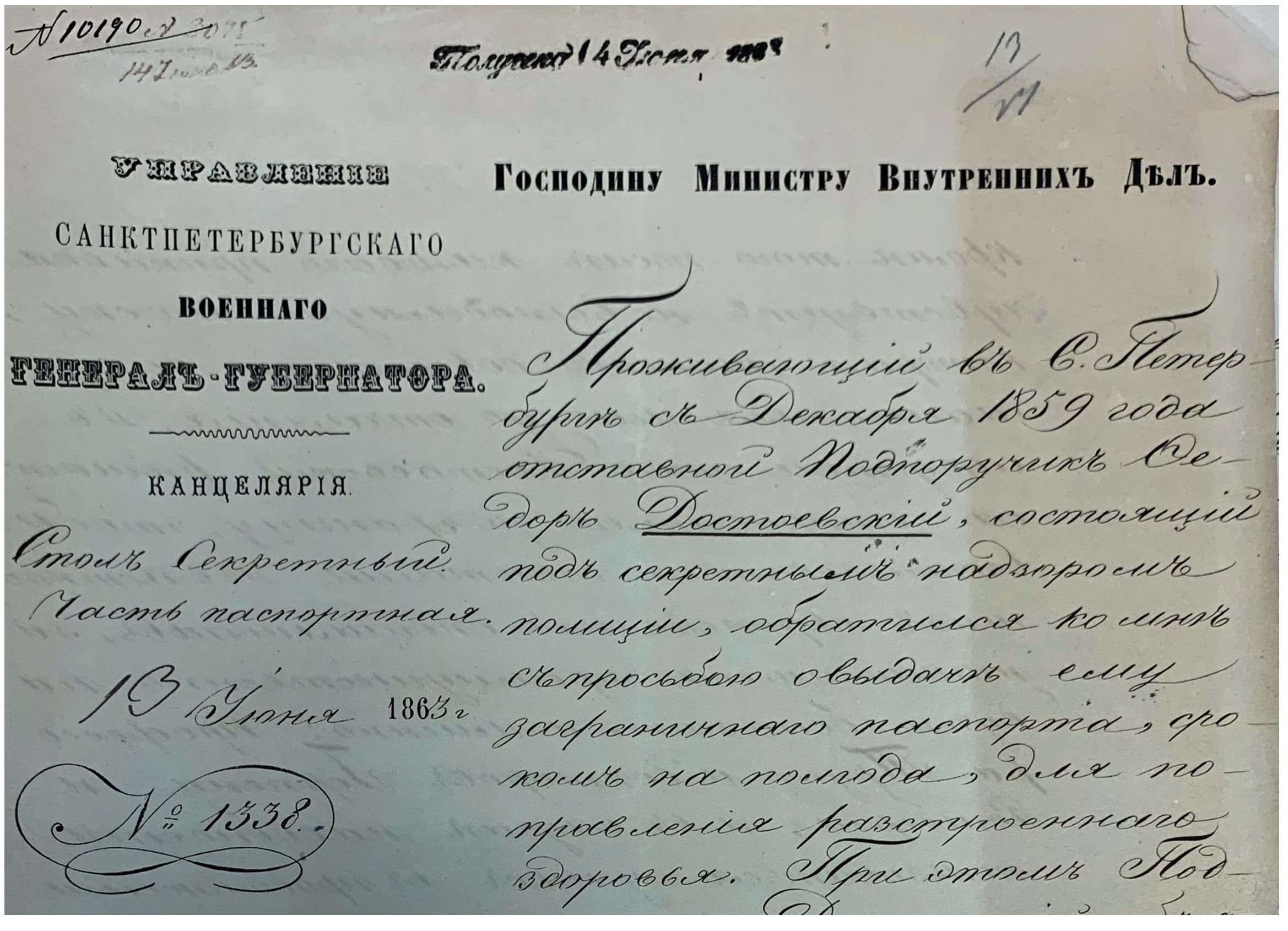 Fig. 12. From “The Case on the Petition of Retired Lieutenant Fyodor Dostoevsky for His Dismissal Abroad” (Russian State Historical Аrchive)