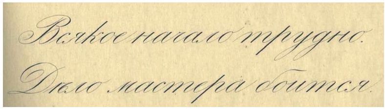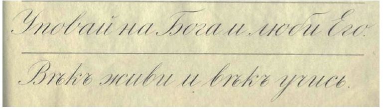 Примеры из учебного пособия В. С. Гербача «Прописи косого и прямого почерков» (Гербач, 1901: 15, 14) (см. также: Печинский):
