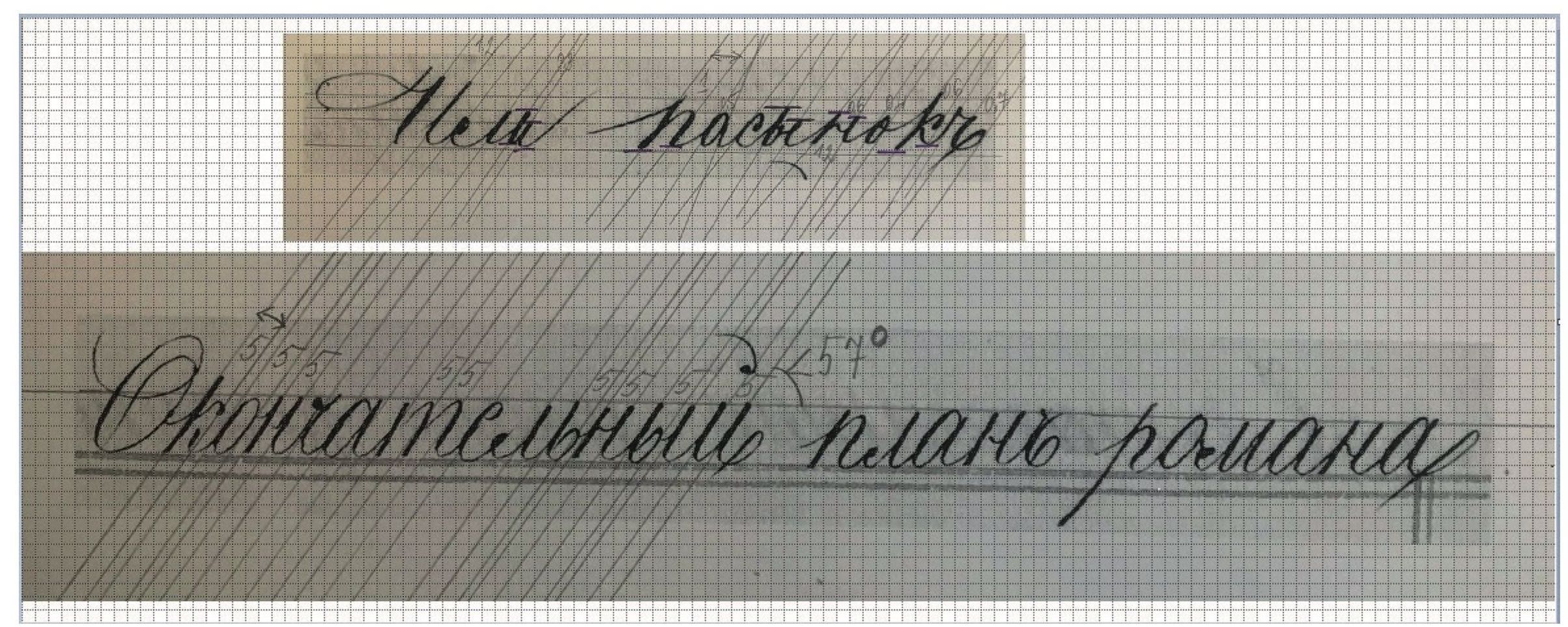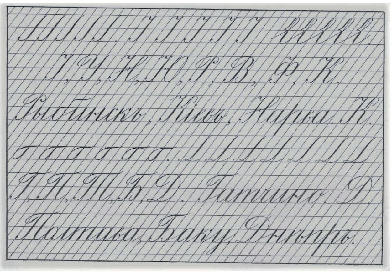 Fig. 9. Samples of military clerk's writing (“inclined” handwriting). “Calligraphic Samples of Inclined and Straight Handwriting” by V. S. Gerbach (1901, ed. 2)