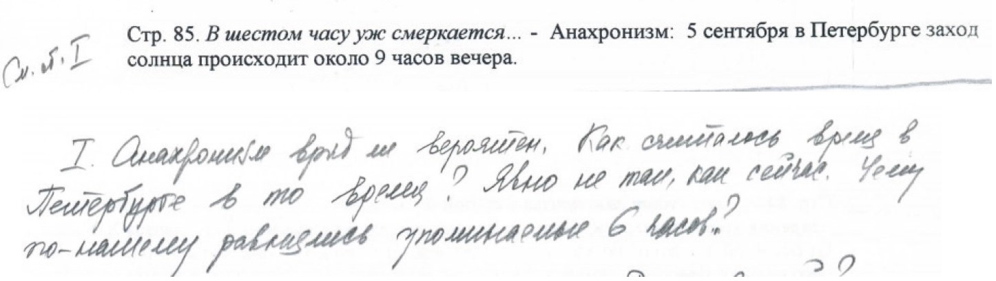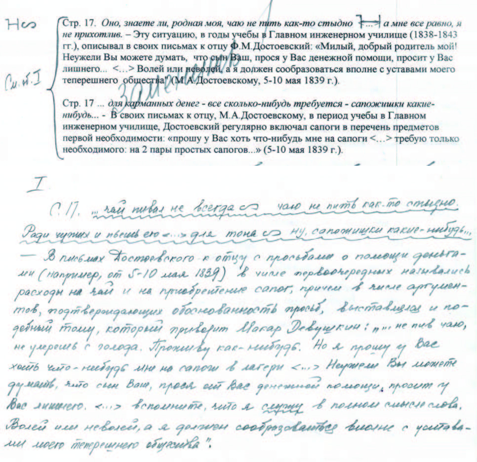 38 Слова: Отметка желтым — Ваша? — принадлежат автору обсуждаемой статьи и, по-видимому, обращены к кому-то, кто принимал участие в подготовке материала статьи (но почему-то не указан). Впрочем, если в подготовке статьи приняли участие несколько авторов, то уже из приведенных примеров следует, что ни один из них не знает ни почерка Достоевского, ни принципов академической публикации его текстов. В рукописи Достоевского, конечно же, слова «Отметка желтым — Ваша?» отсутствуют. То, что они остались в окончательном, опубликованном (в том числе в электронном виде, см.: http://lib2.pushkinskijdom.ru/Media/Default/PDF/Dostoevsky/%D0%94%D0%9C%D0%98-22.pdf) варианте статьи, лишний раз показывает, насколько небрежен К. А. Баршт в работе даже над собственными текстами. Между тем в данном сборнике, где опубликована статья, К. А. Баршт значится также ответственным редактором.