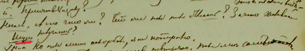 В скорописи Достоевского это название (в полной форме) встречается в записной тетради (РГАЛИ. Ф. 212. 1. 15. Л. 7 об.) среди черновых заметок к «Дневнику Писателя» 1876 г.: