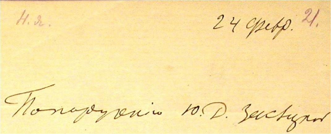 Илл. 4. Фрагмент записки В. Ф. Пуцыковича Ф. М. Достоевскому от 24 февраля [1874 г.]. (ОР РГБ. Ф. 93.I.3.11. Л. 21)